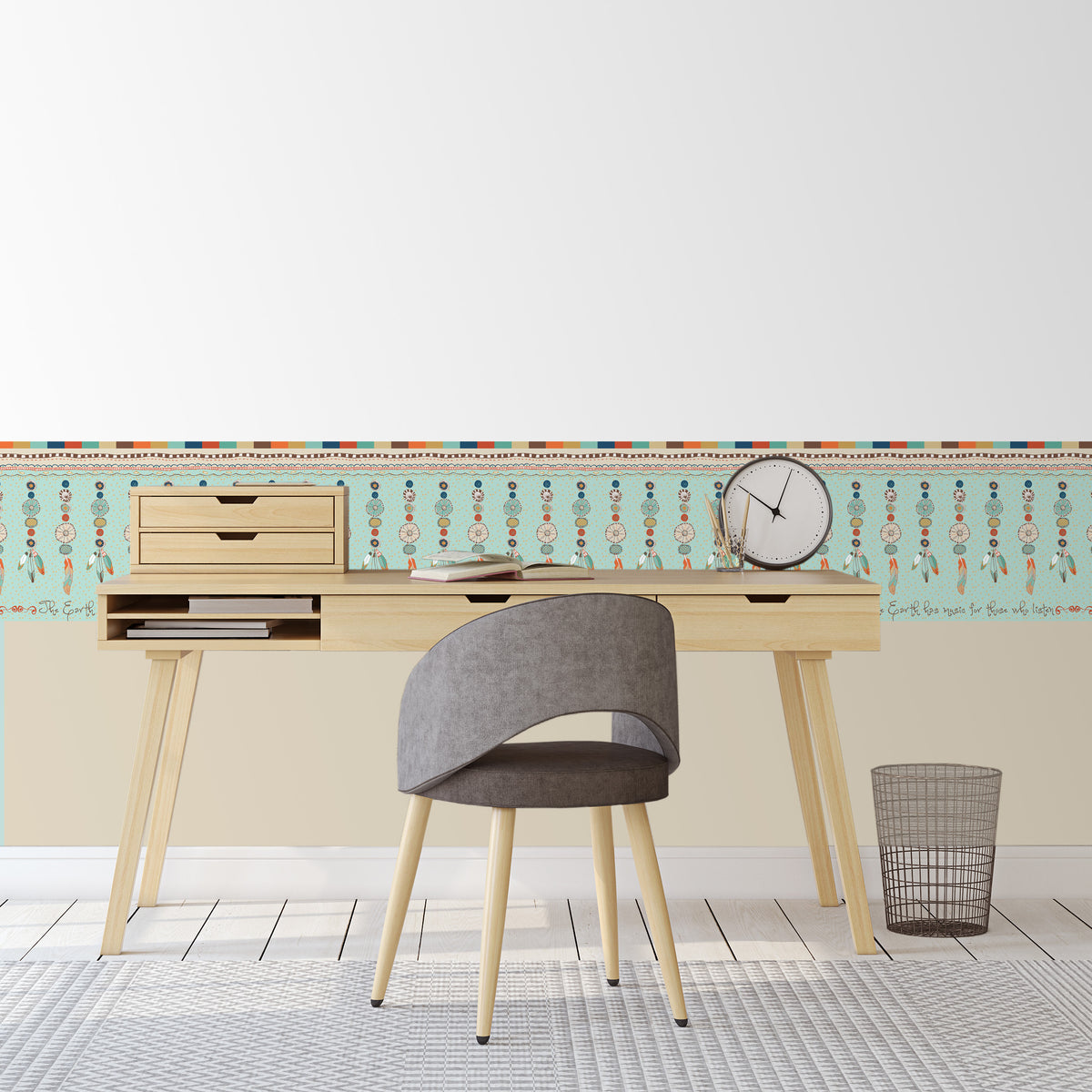 טפט בורדר לקיר עם נוצות וחרוזים בהשראה אינדיאנית