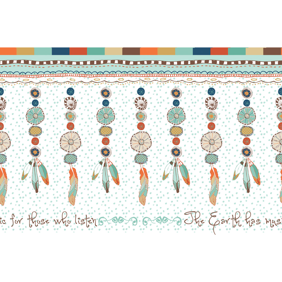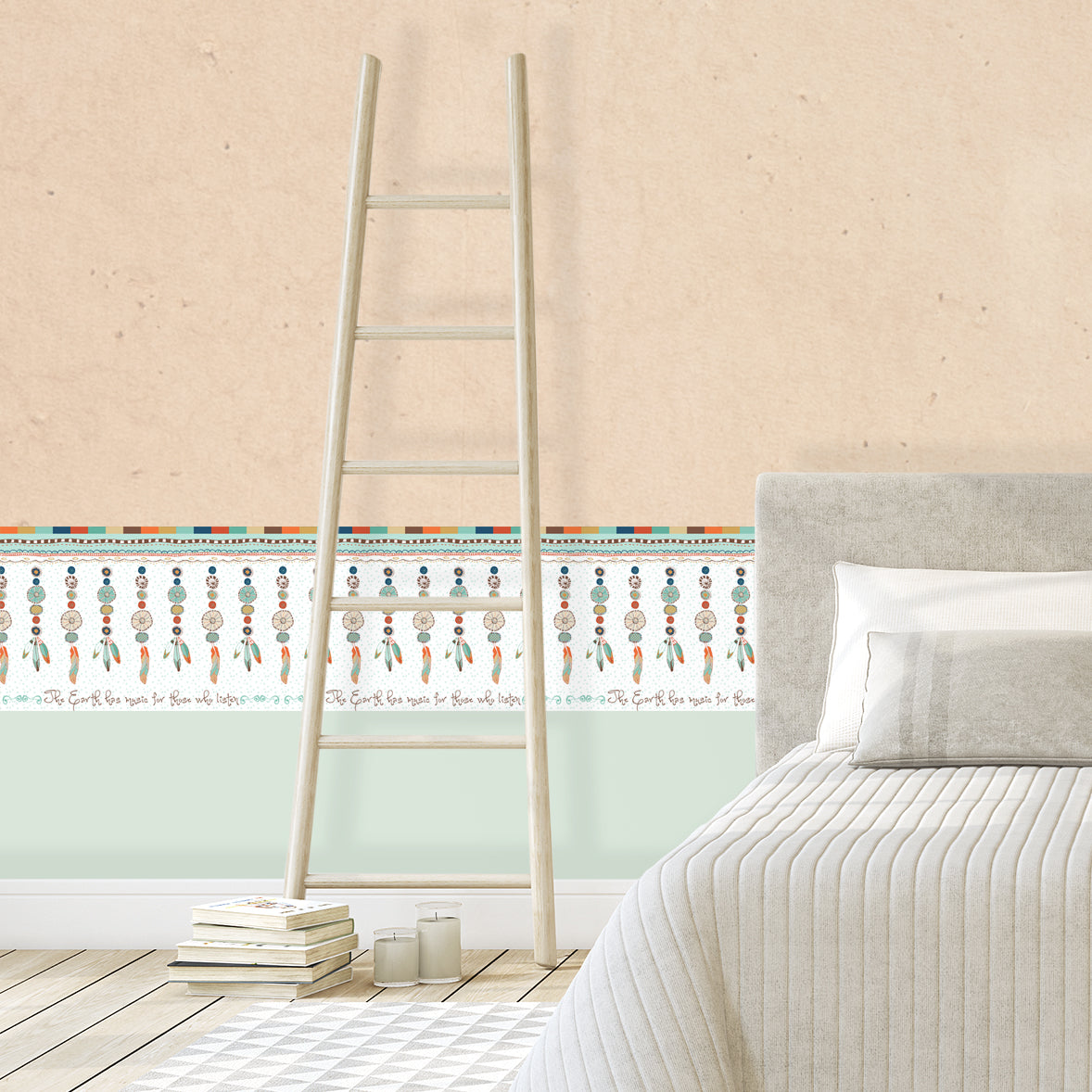 טפט בורדר לקיר עם נוצות וחרוזים בהשראה אינדיאנית