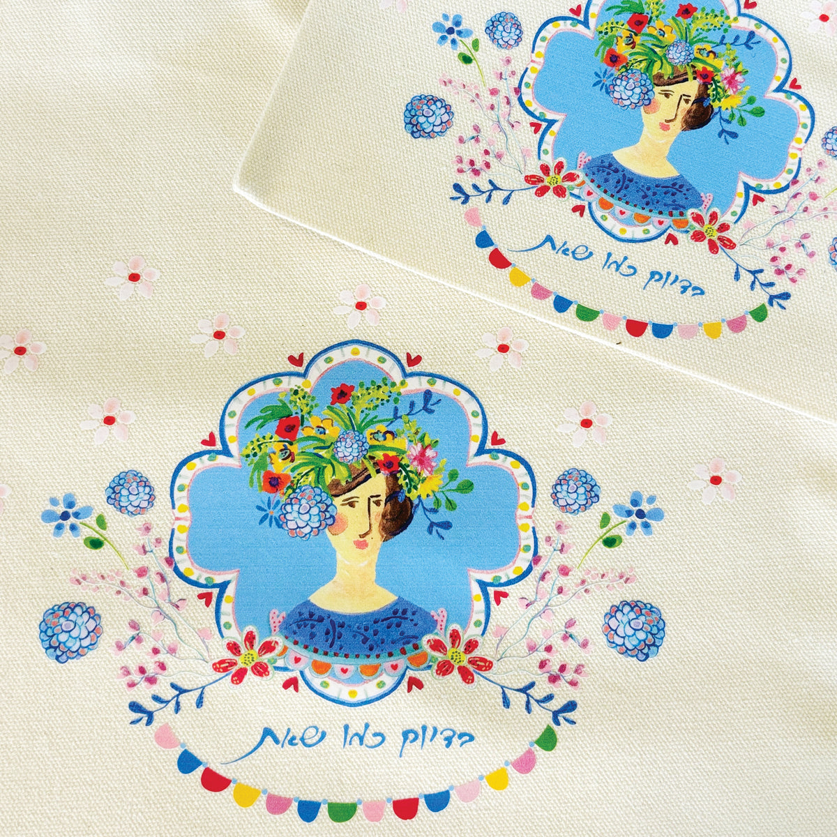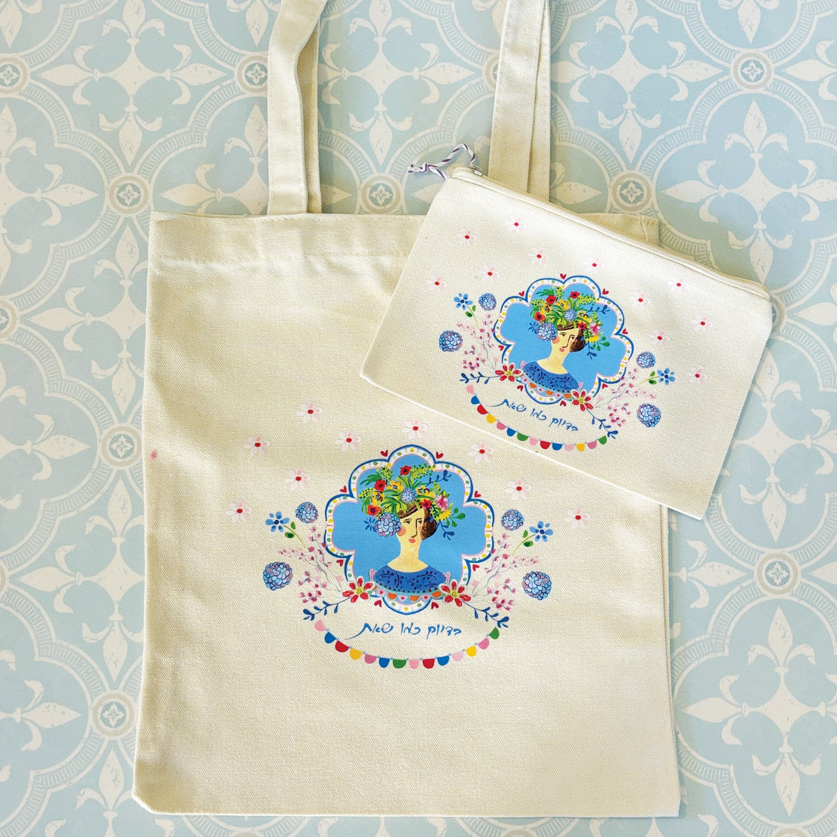 תיק וקלמר מבד קנווס עם הדפס מיוחד ומקסים של דמות נשית