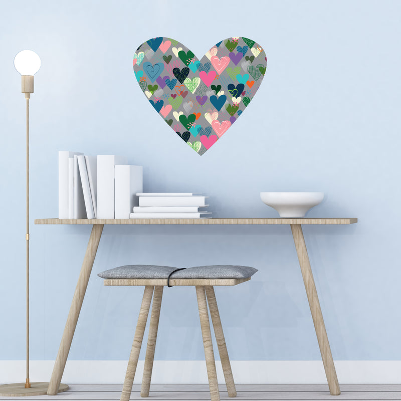 מדבקת קיר לב גדולה - דוגמת לבבות אפורה