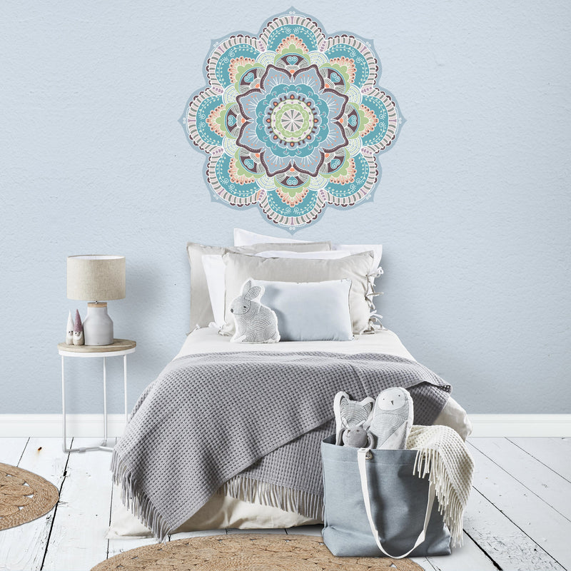 מדבקת קיר מנדלה טורקיז גודל 60 ס״מ במבצע
