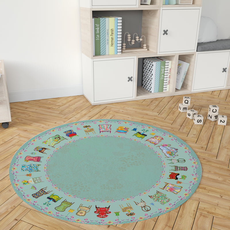 שטיח פיויסי עגול- כיסאות וינטג׳ טורקיז