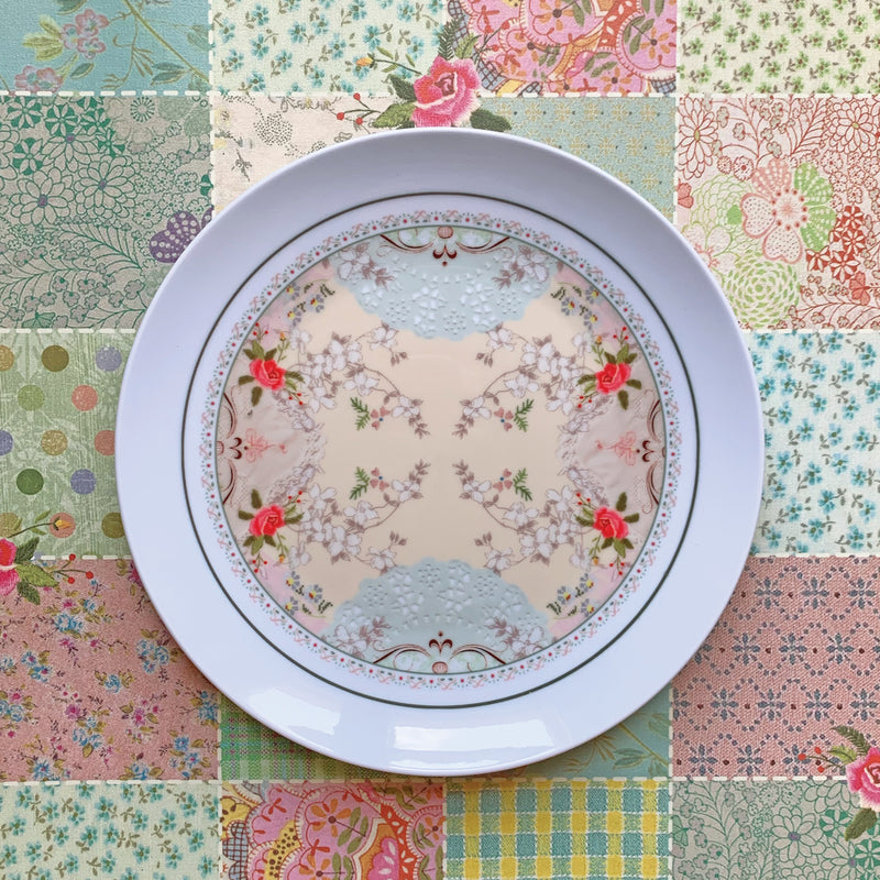 צלחת קרמיקה מודפסת- תחרה וינטג׳ שמנת