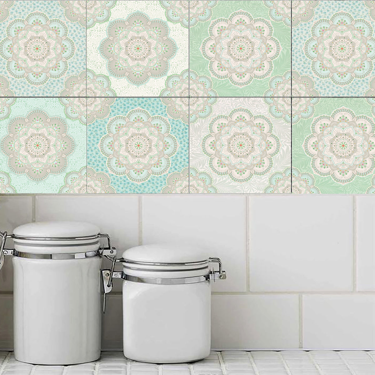 סט מדבקות לאריחים עם מנדלות בגווני פסטל עדינים