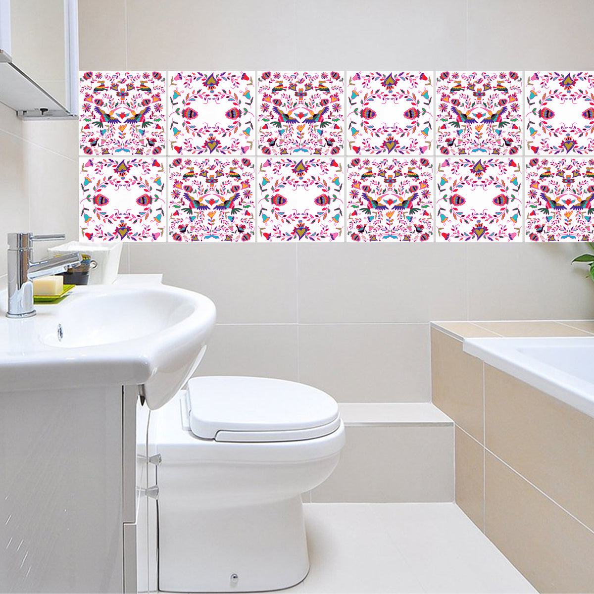 סט מדבקות אריחים צבעוני ושמח עם איורים בסגנון רקמות מקסיקניות