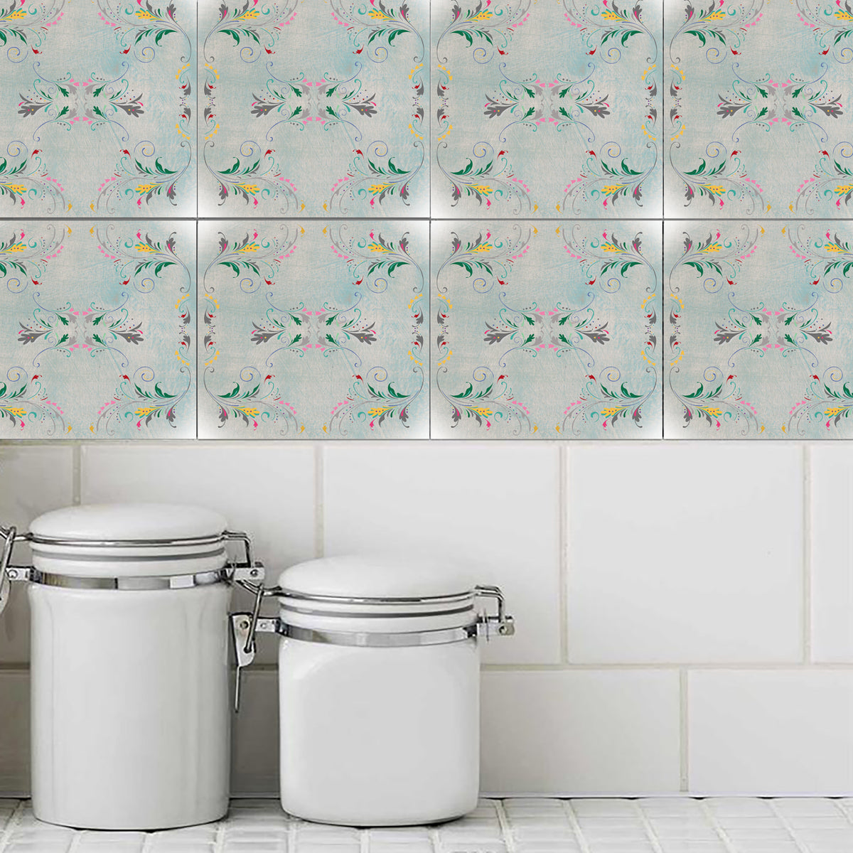 סט מדבקות אריחים - סילסולים רקע טורקיז בהיר
