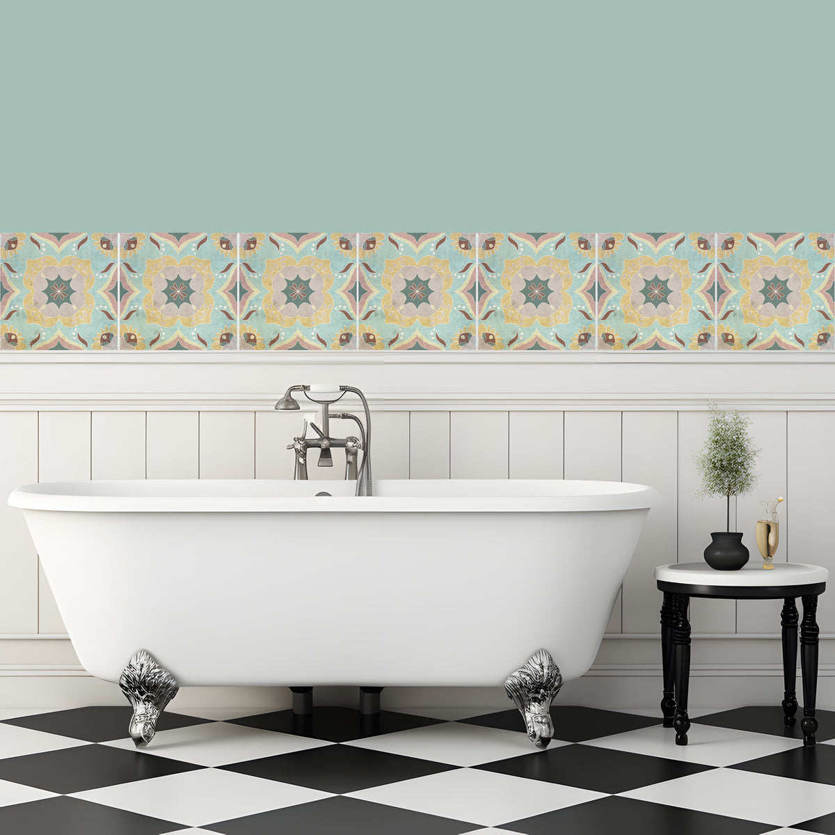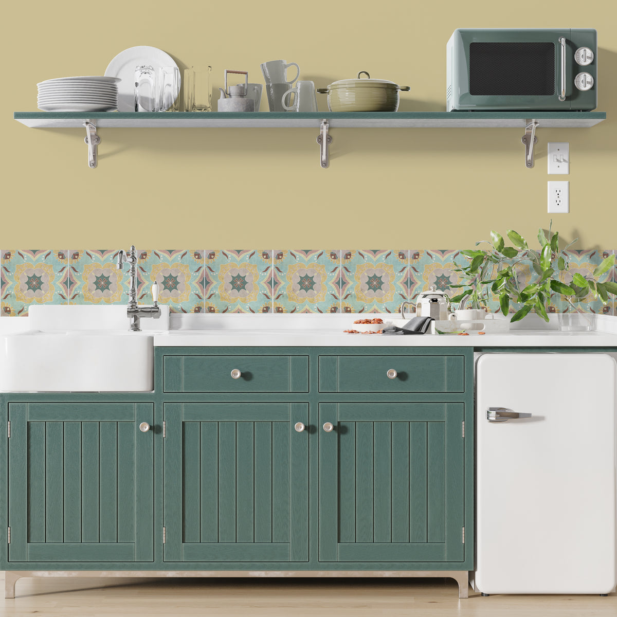 סט מדבקות אריח וינטג׳- רות טורקיז חרדל