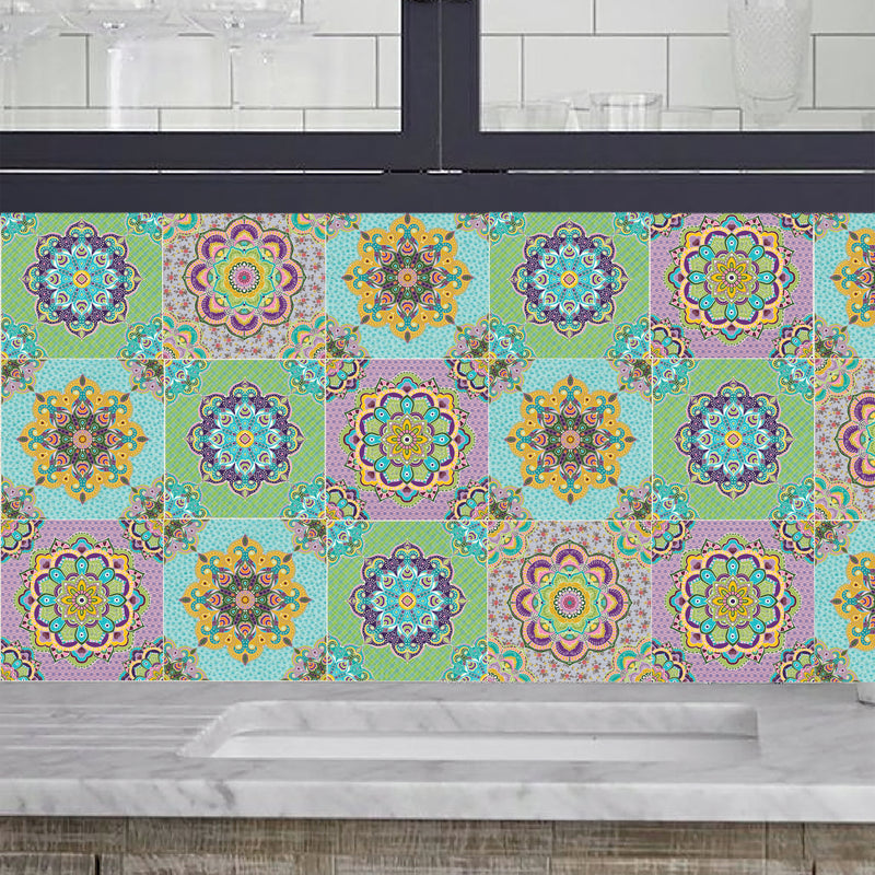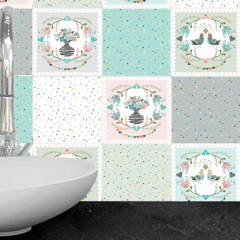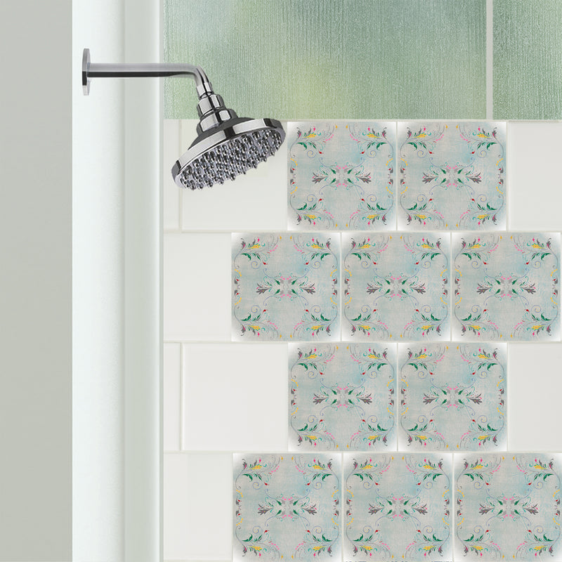 סט מדבקות אריחים - סילסולים רקע טורקיז בהיר