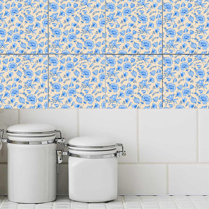 סט מדבקות אריח פרחים כחול לבן- אורלי