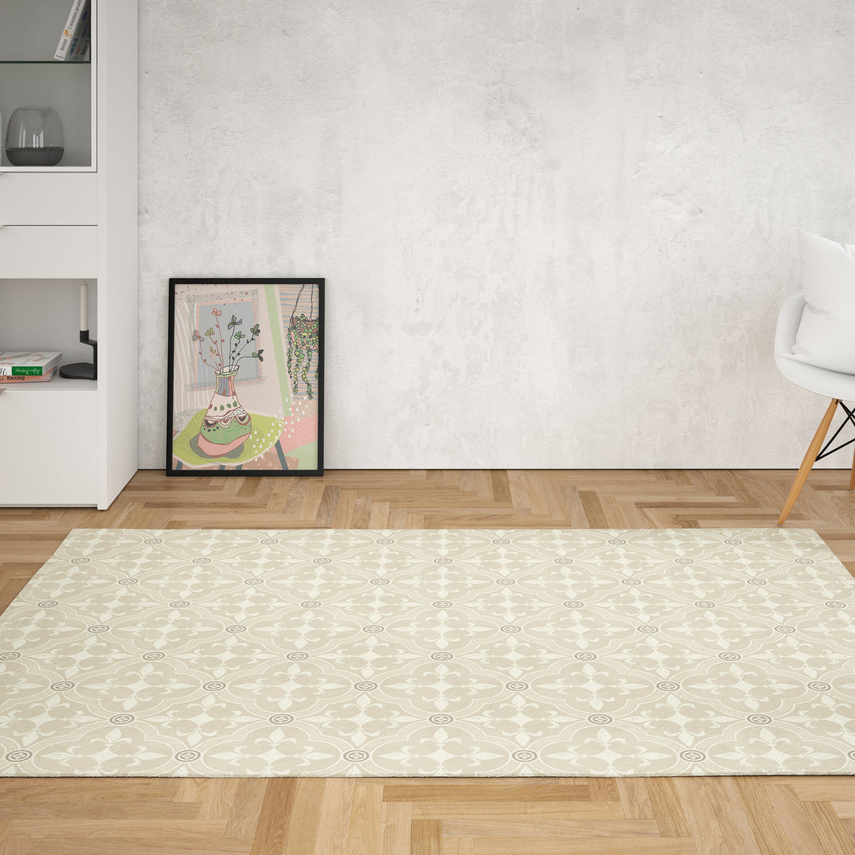 שטיח פי וי סי בעיצוב אריחים רטרו בז׳