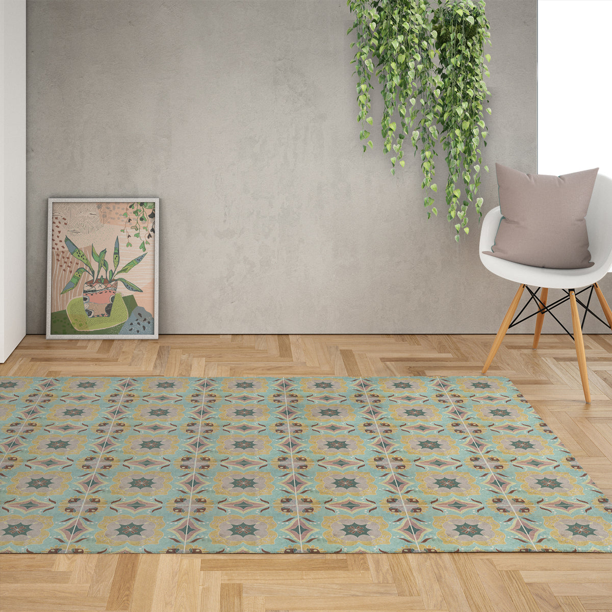 שטיח פיויסי אריחים וינטג׳- רות טורקיז חרדל