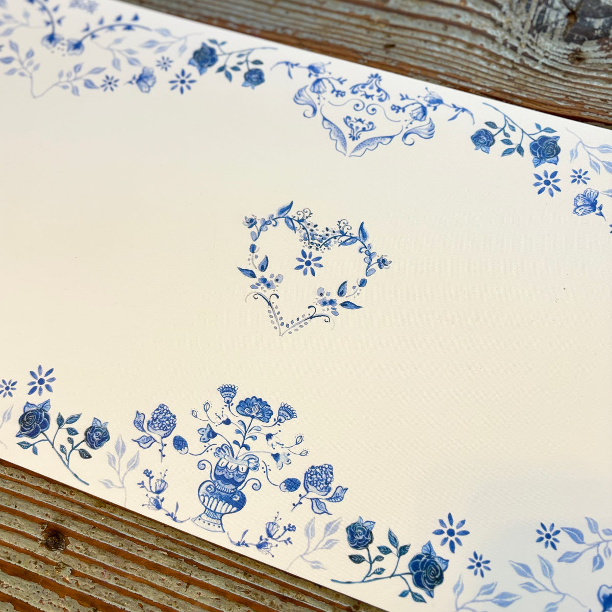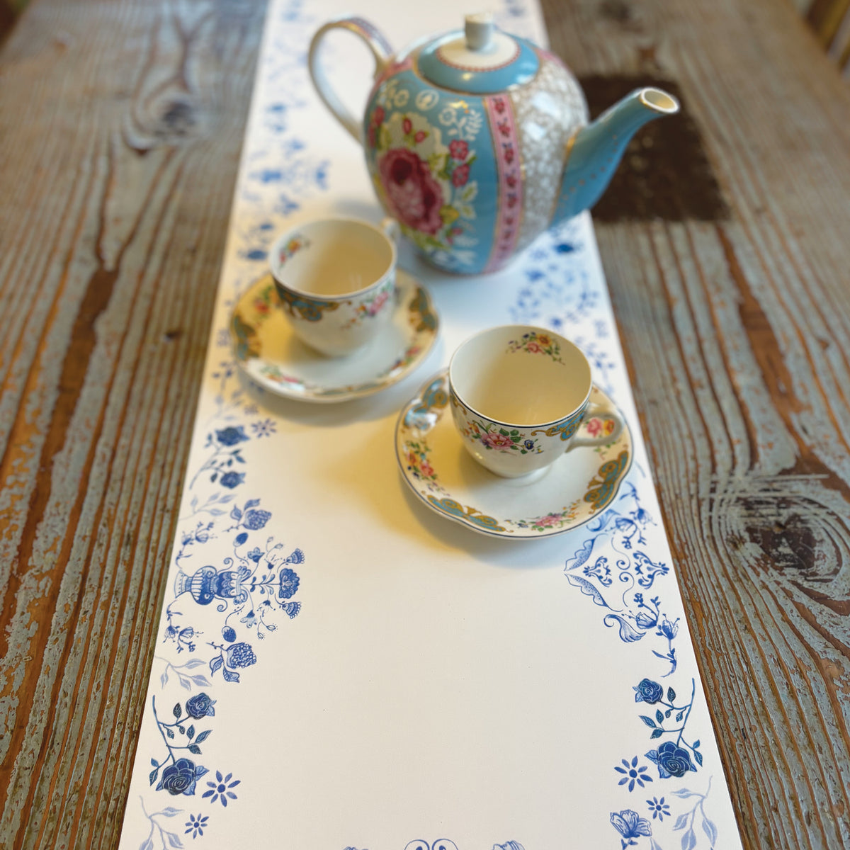 ראנר פיויסי לשולחן- לב ופרחים כחול לבן
