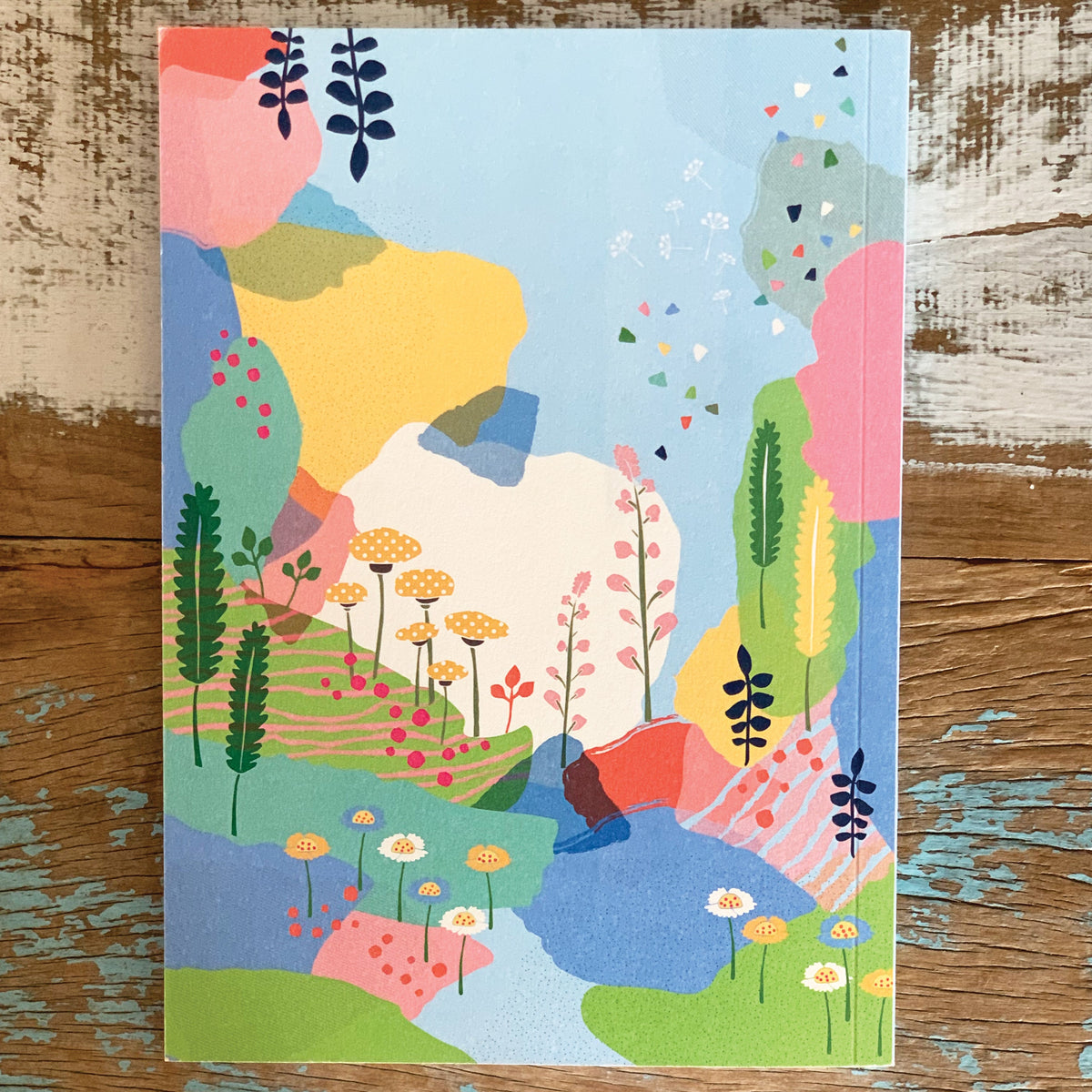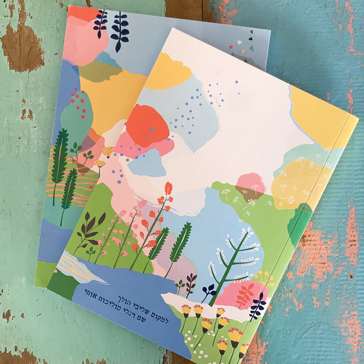 צמד מחברות יפות עם איורי נופים צבעוניים, כריכה רכה.