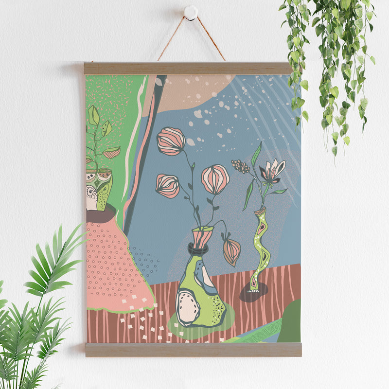 פוסטר/הדפס לתלייה- סדרת פינה בירוק, כד פרחים בלילה קסום