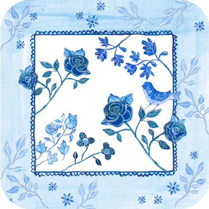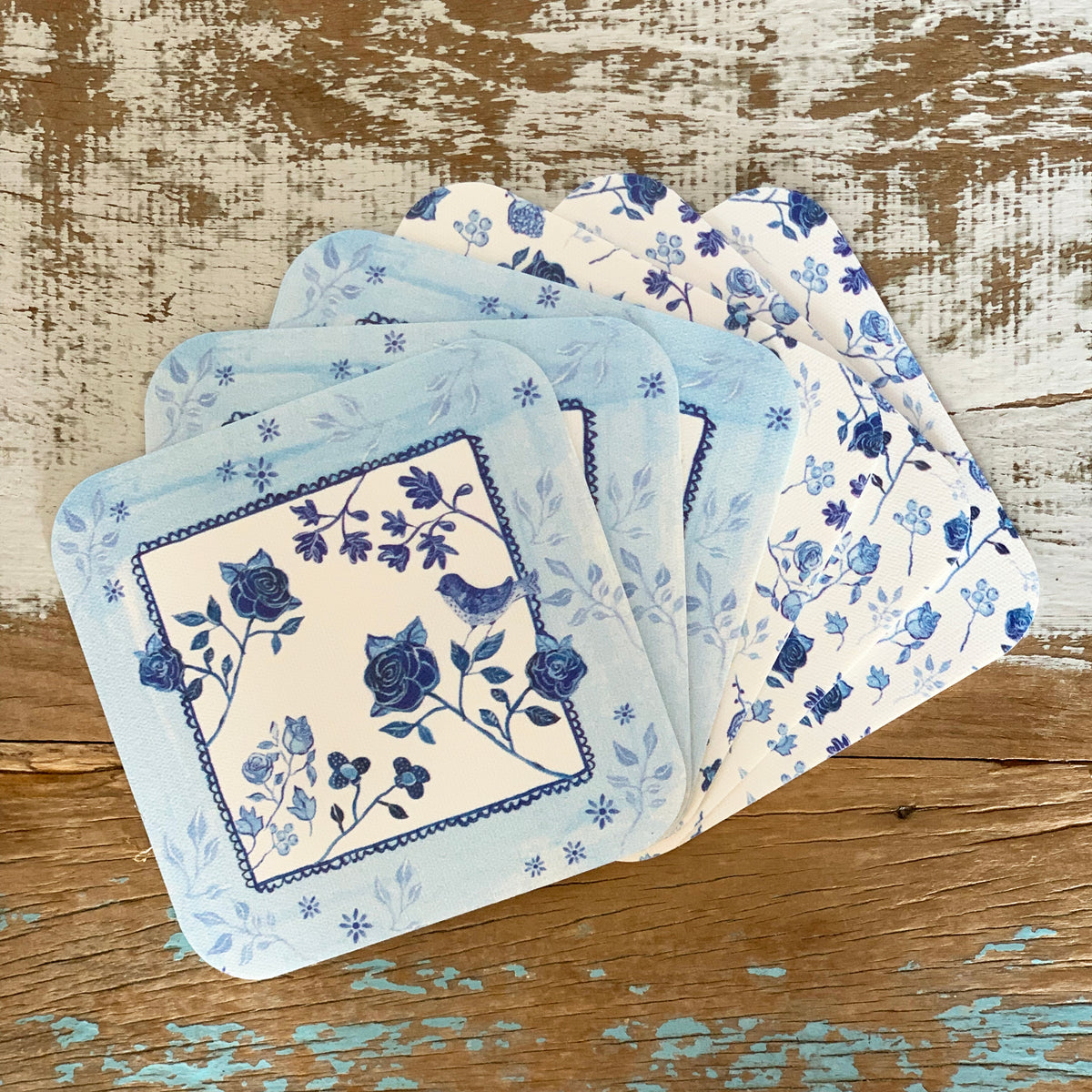 סט תחתיות לכוסות- פרחים כחול לבן אורלי