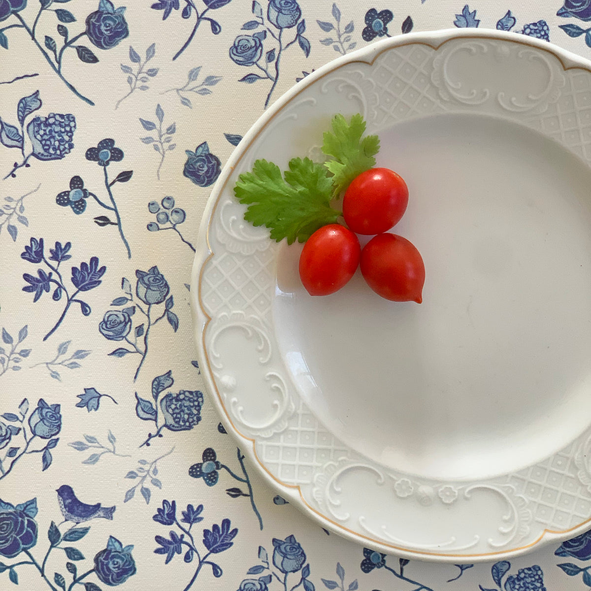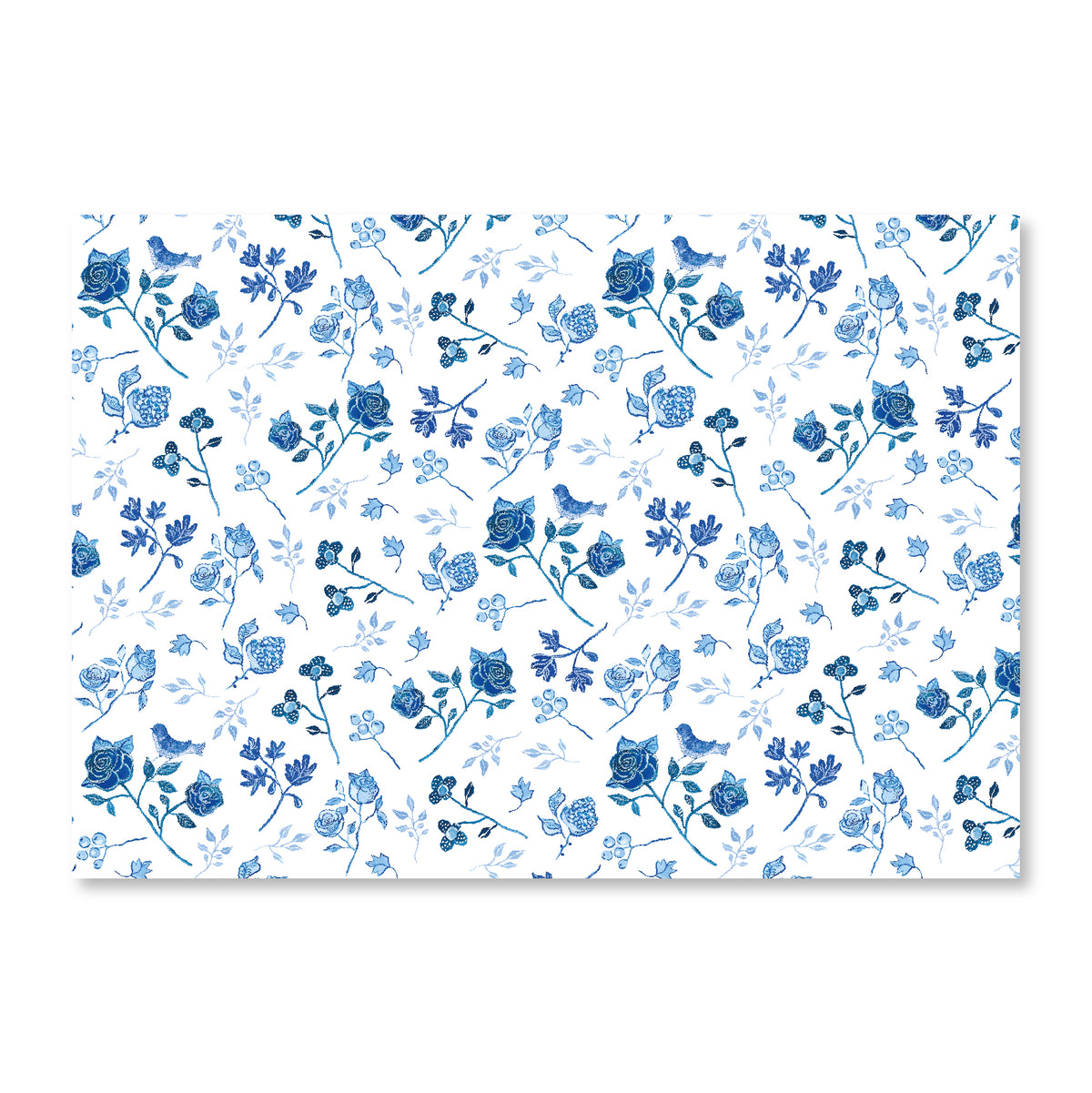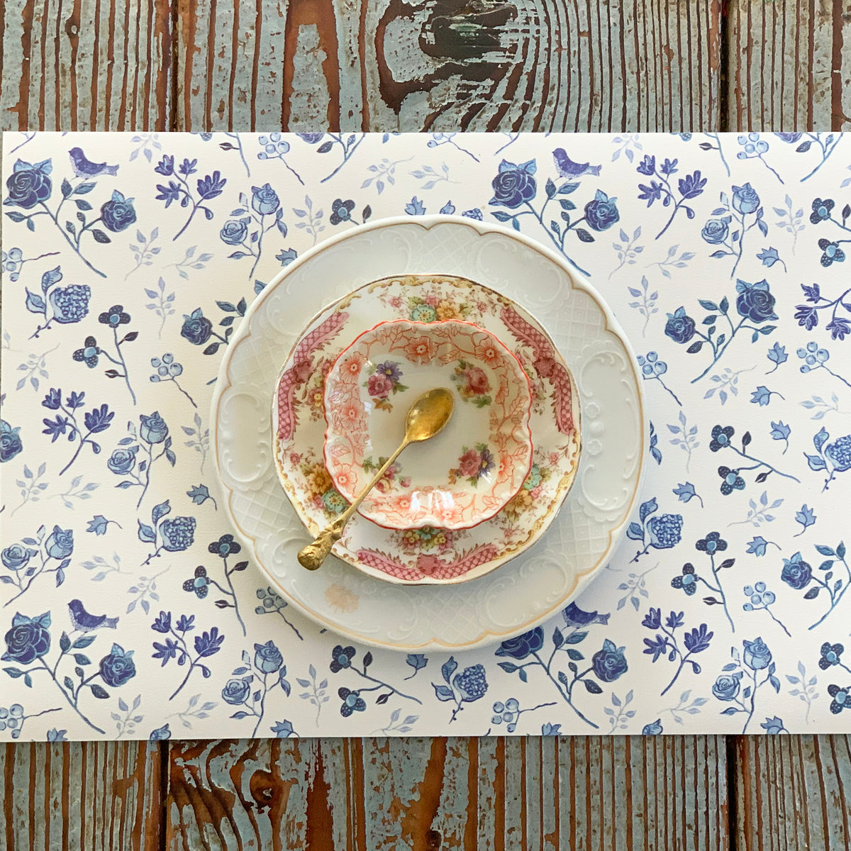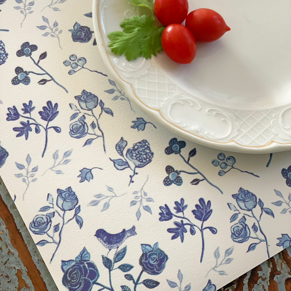 סט פלייסמטים מלבני חגיגי קלאסי עם ציורי פרחים בכחול לבן