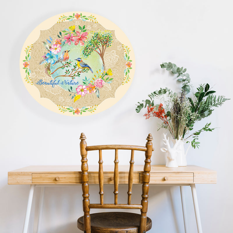 מדבקת קיר פרחים וציפורים beautiful nature בז׳