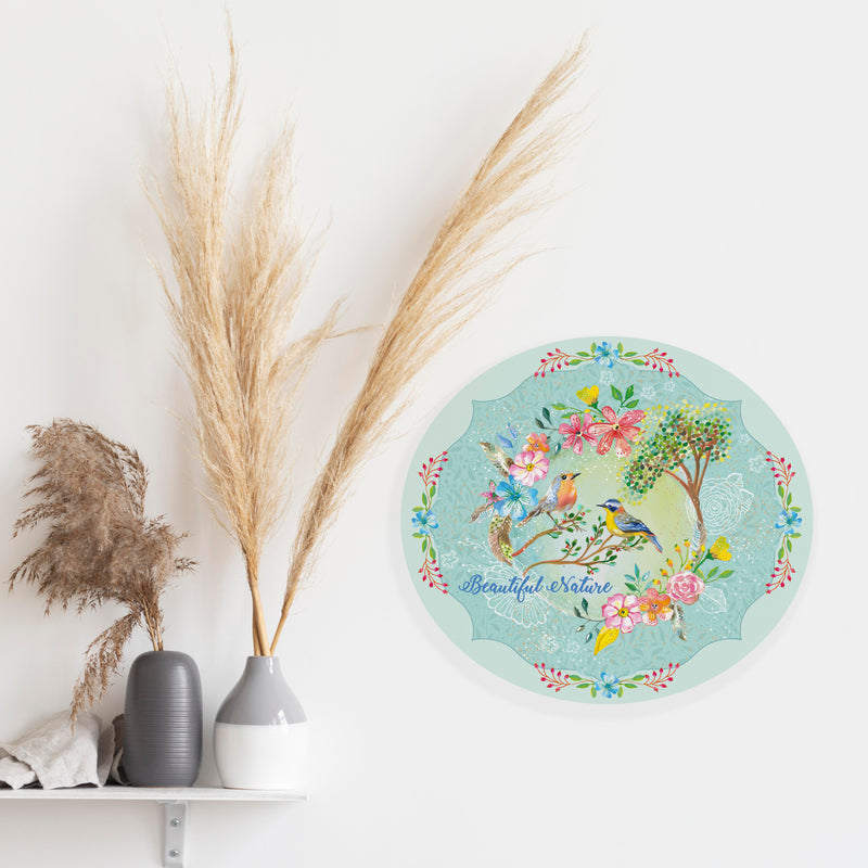 מדבקת קיר פרחים וציפורים beautiful nature טורקיז