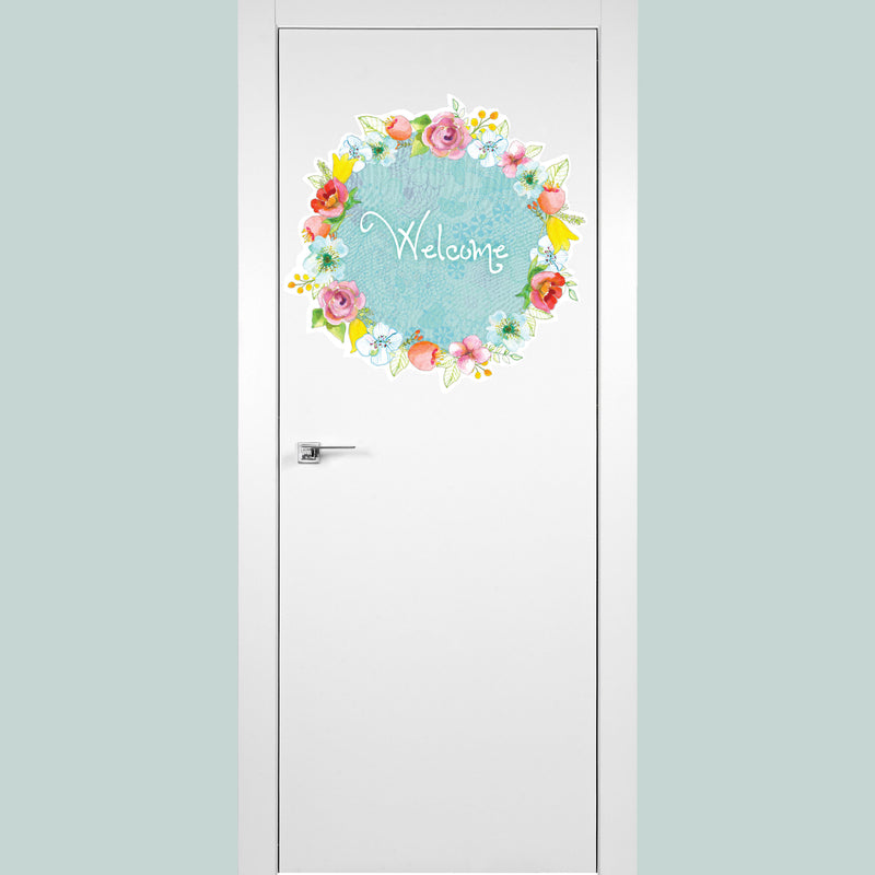 Welcome מדבקת קיר זר פרחים- תכלת