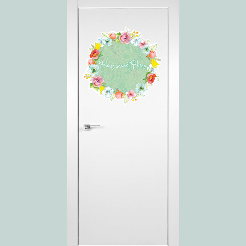 Welcome מדבקת קיר זר פרחים- ירוק