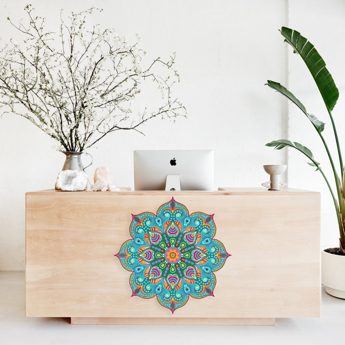 מדבקת קיר מנדלה טורקיז גודל 60 ס״מ במבצע