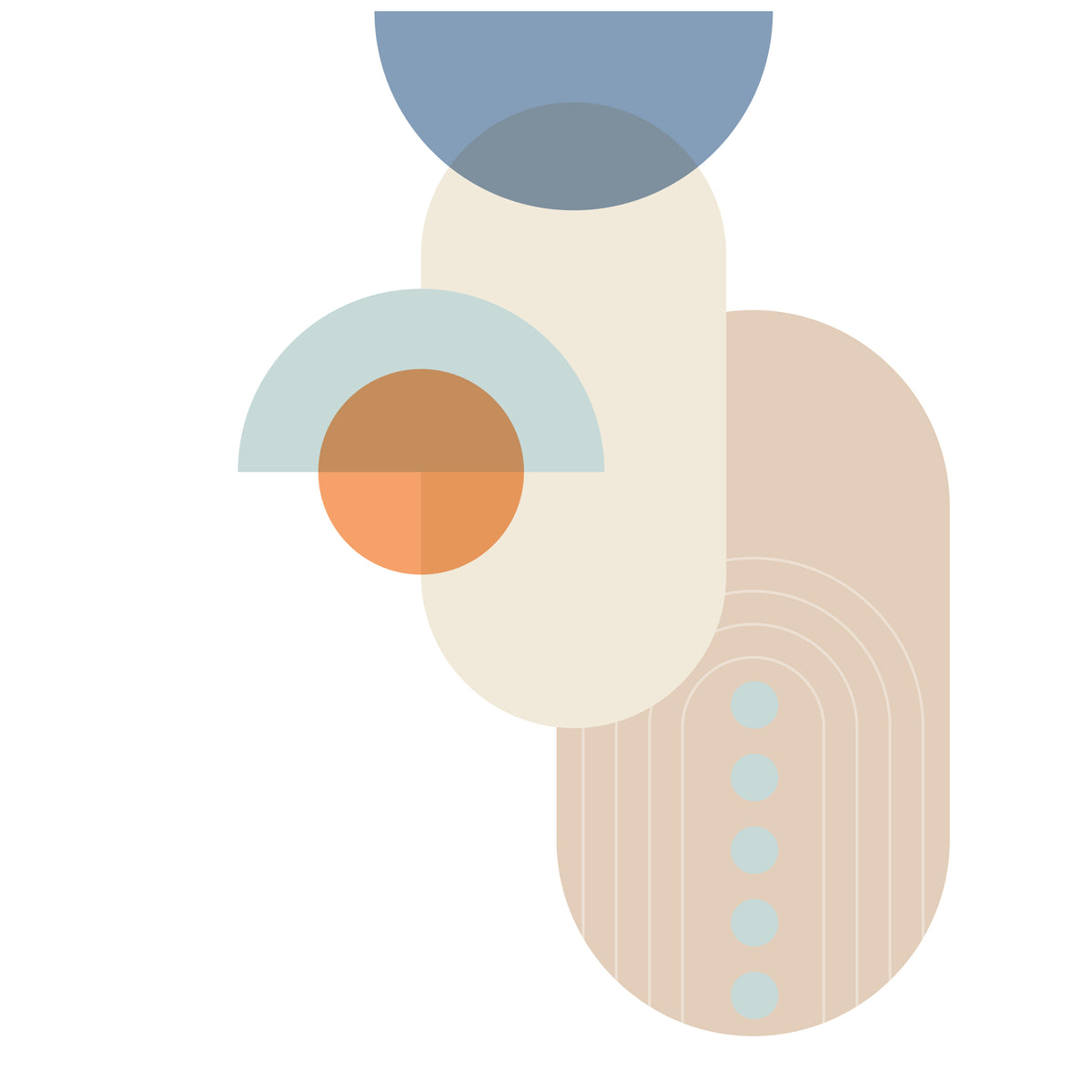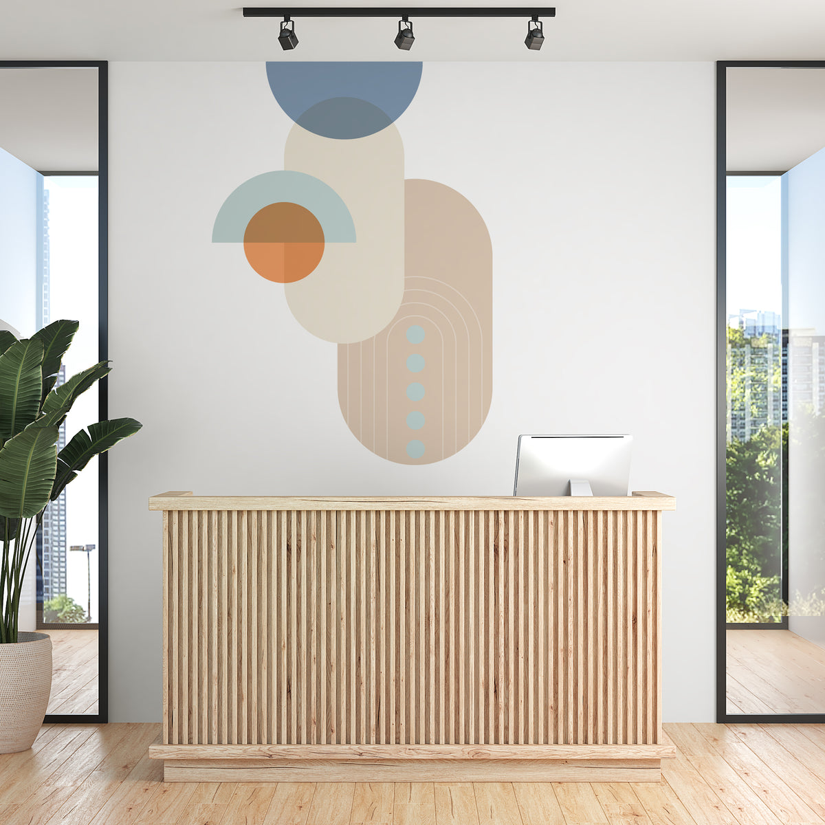 מדבקת קיר עם צורות גיאומטריות נקיות בגוונים בהירים, חיתוך צורני