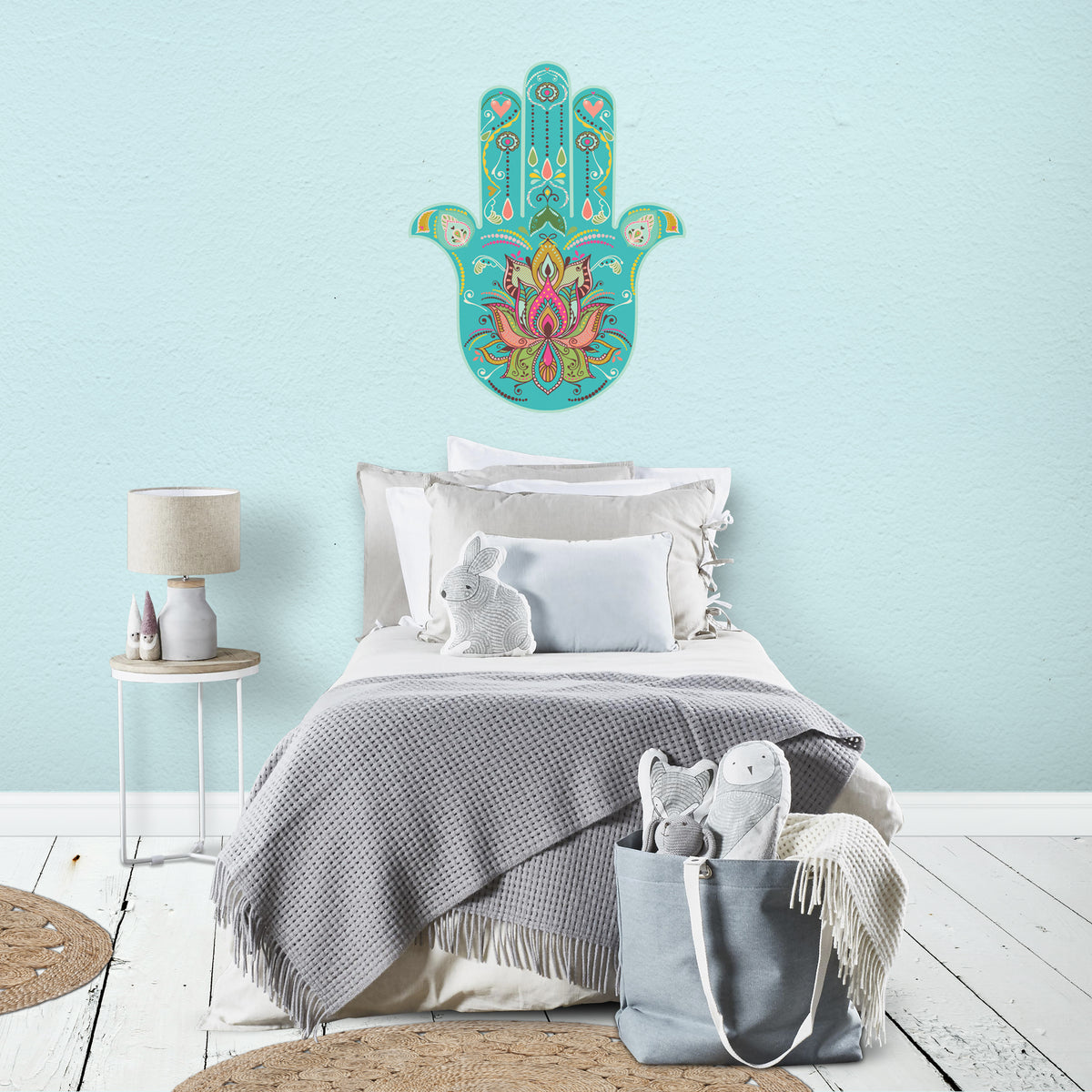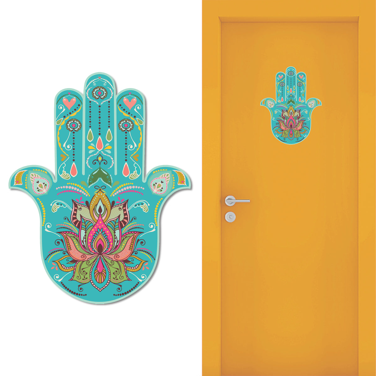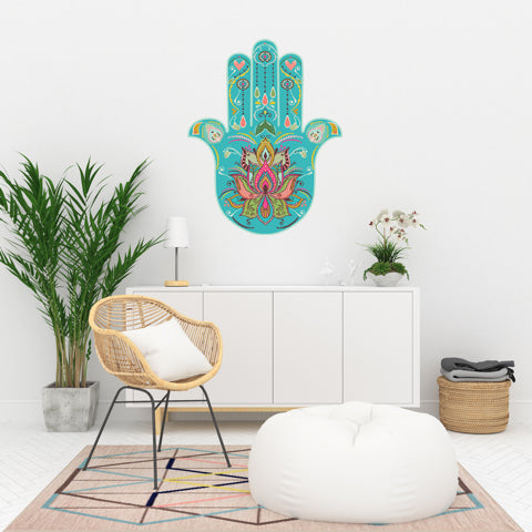 מדבקת קיר חמסה מיוחדת בחיתוך צורני, גווני טורקיז