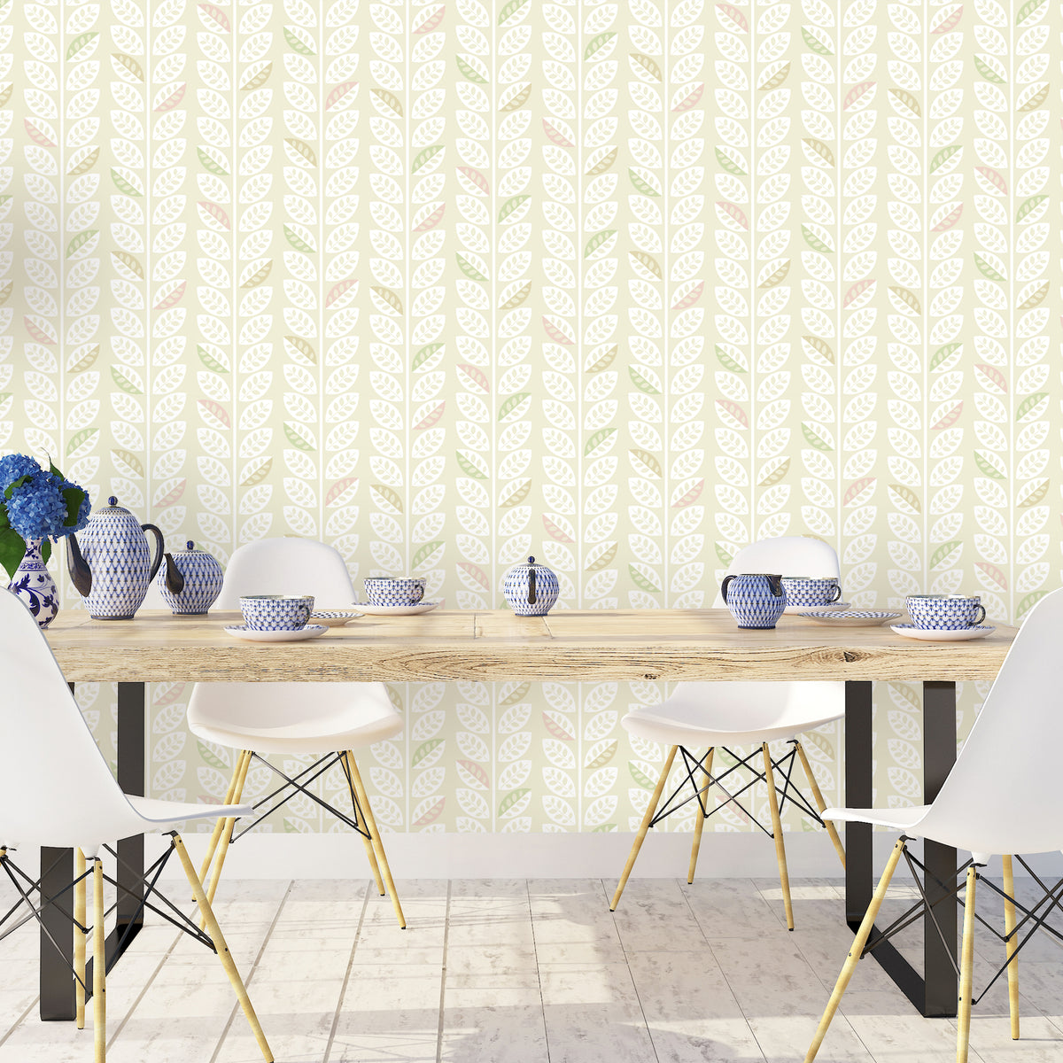 טפט קיר עדין ומשתלב, איור עלים סימטרי