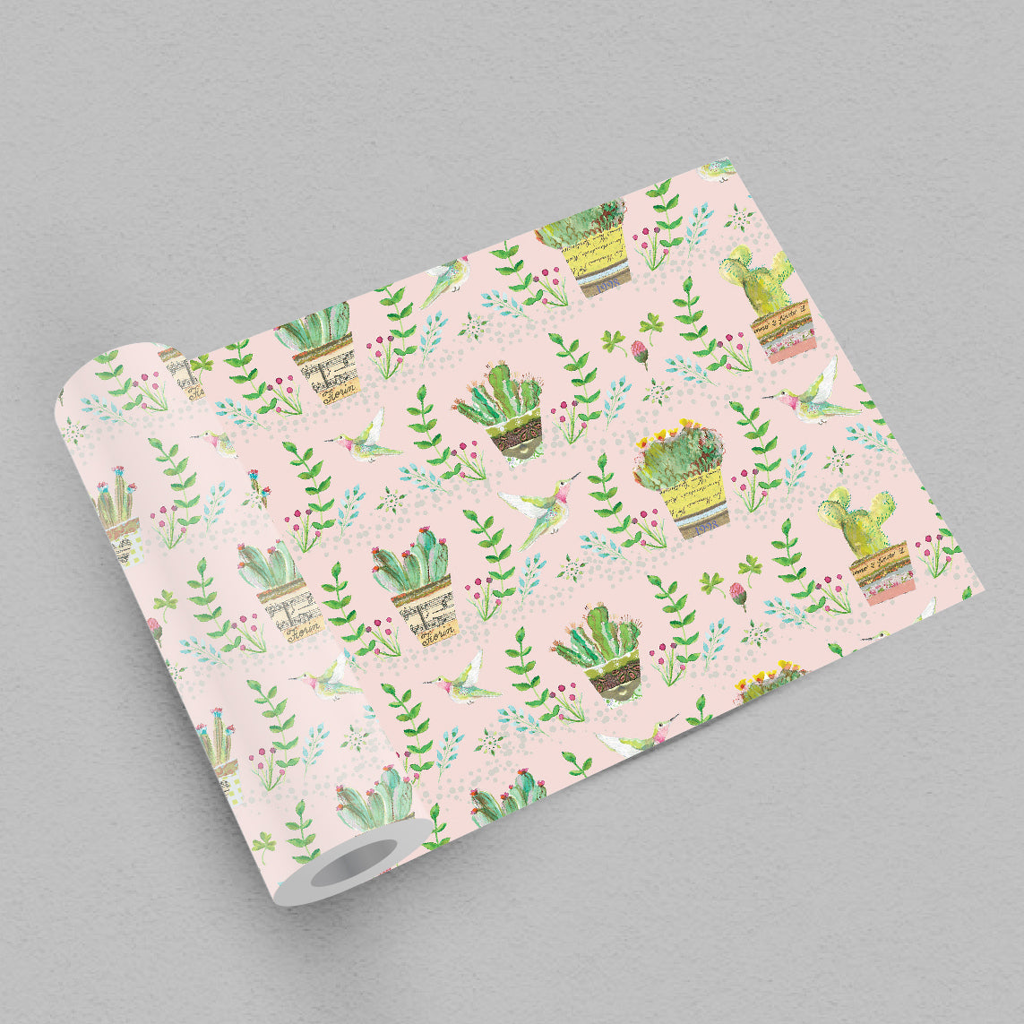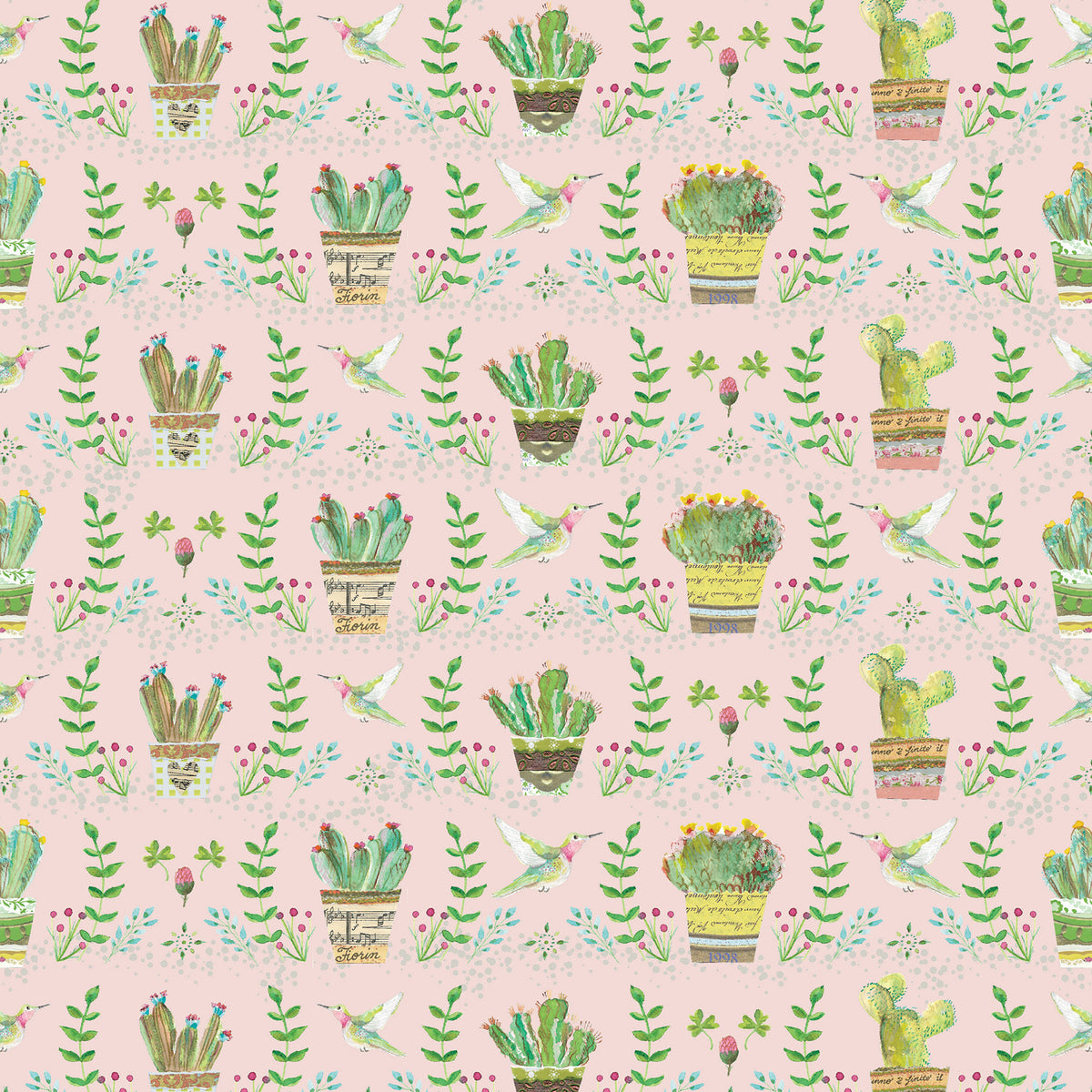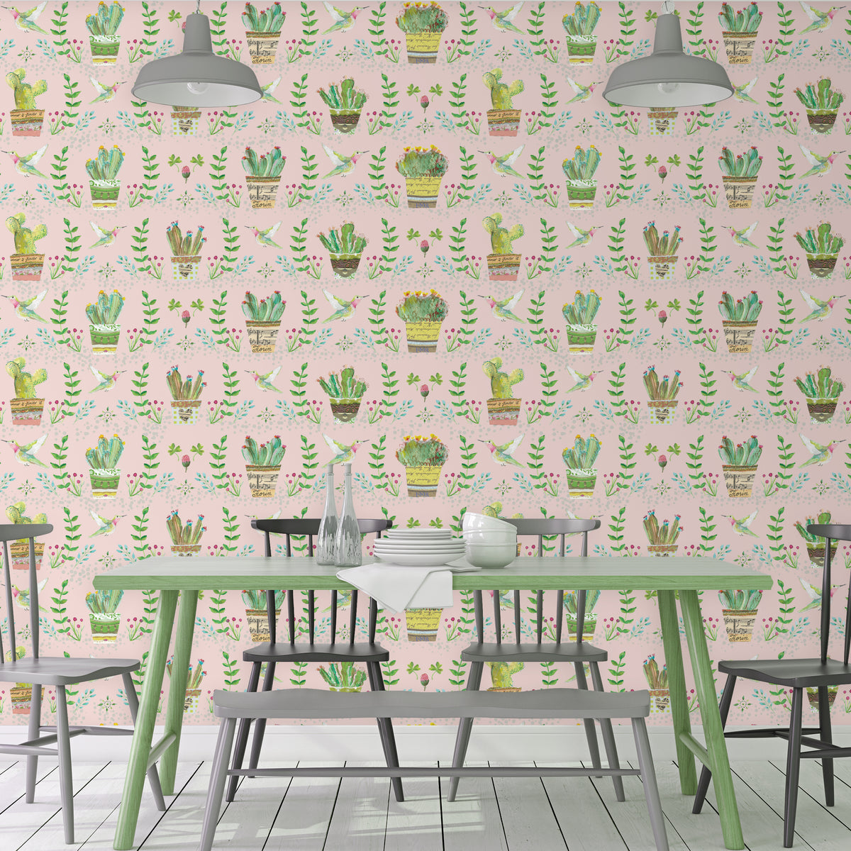 טפט קיר עם איורי עציצים- ורוד