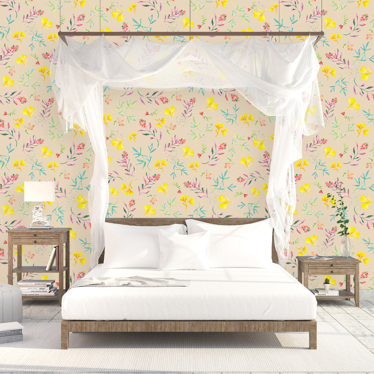 טפט עם איורים מקוריים בצבעי מים של ״גל דיזיינס״, משדרג ומוסיף המון לכל קיר, חדר או חלל.