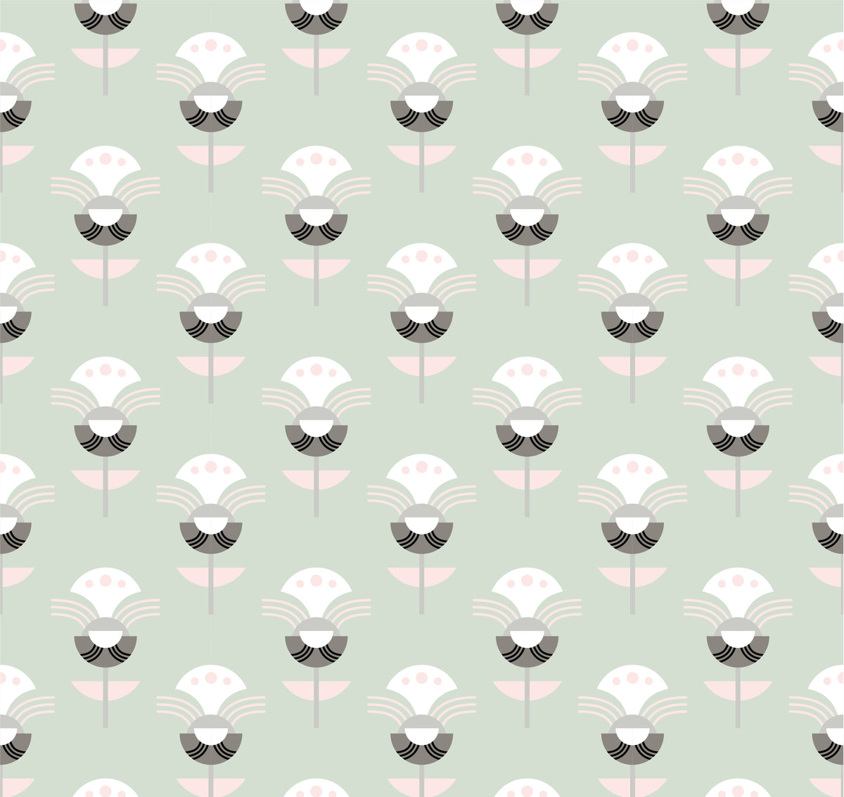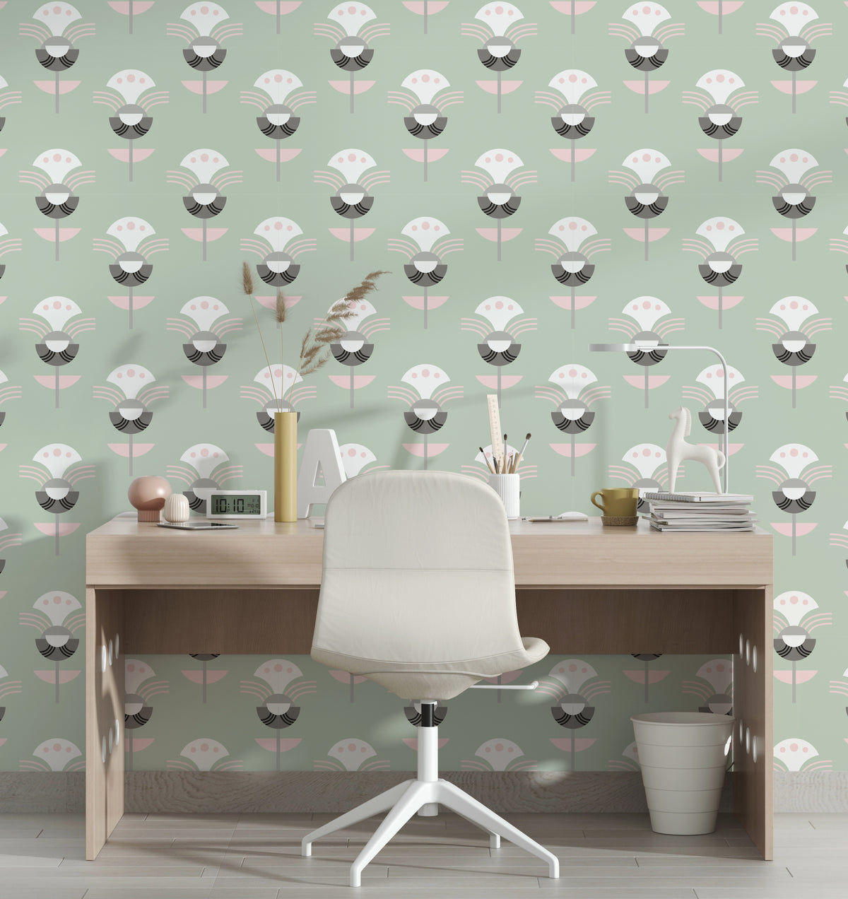 טפט קיר נורדי- פרחים נורה ירוק סלדין