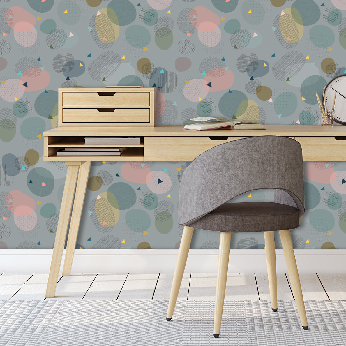 טפט קיר אופנתי בסגנון סקנדינבי עם אליפסות בצבעוניות מעודנת