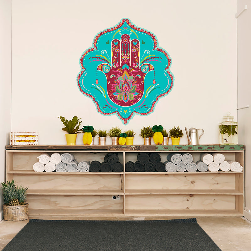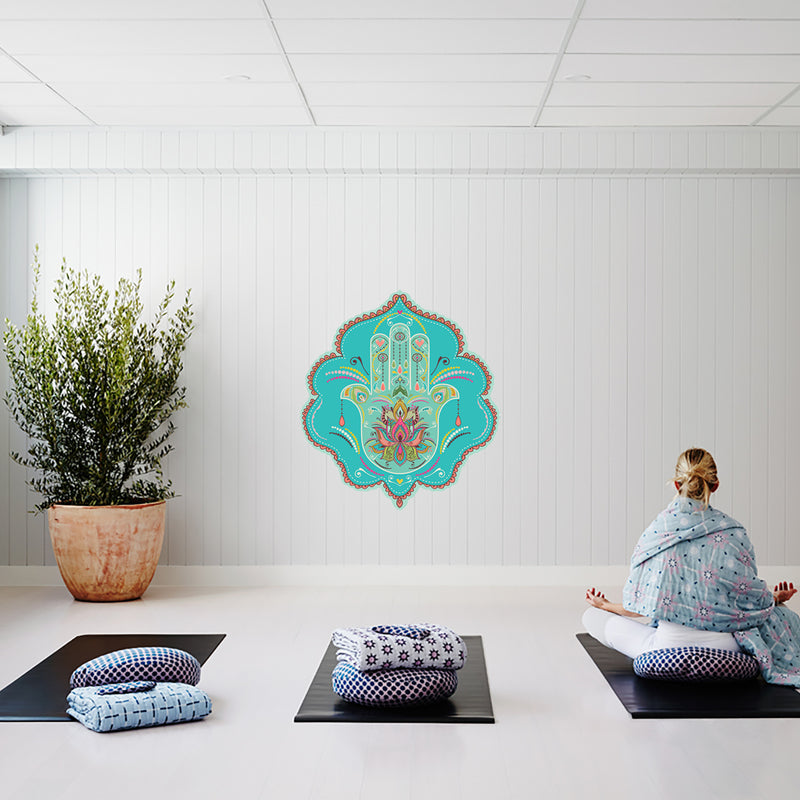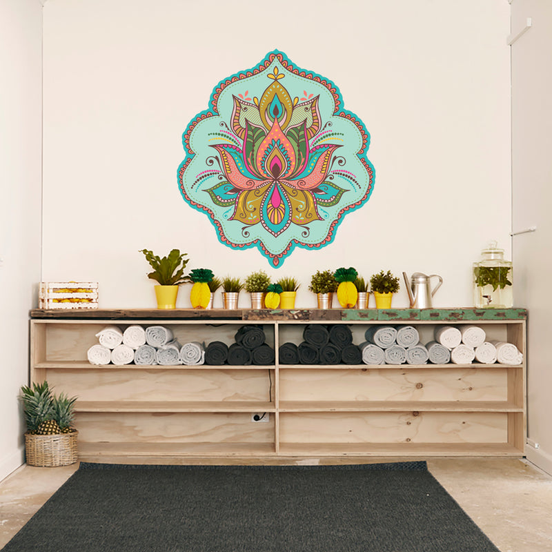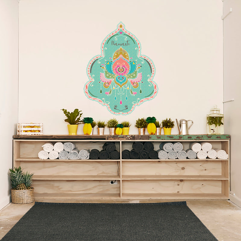 מדבקת קיר פרח לוטוס טורקיז גילי Namaste