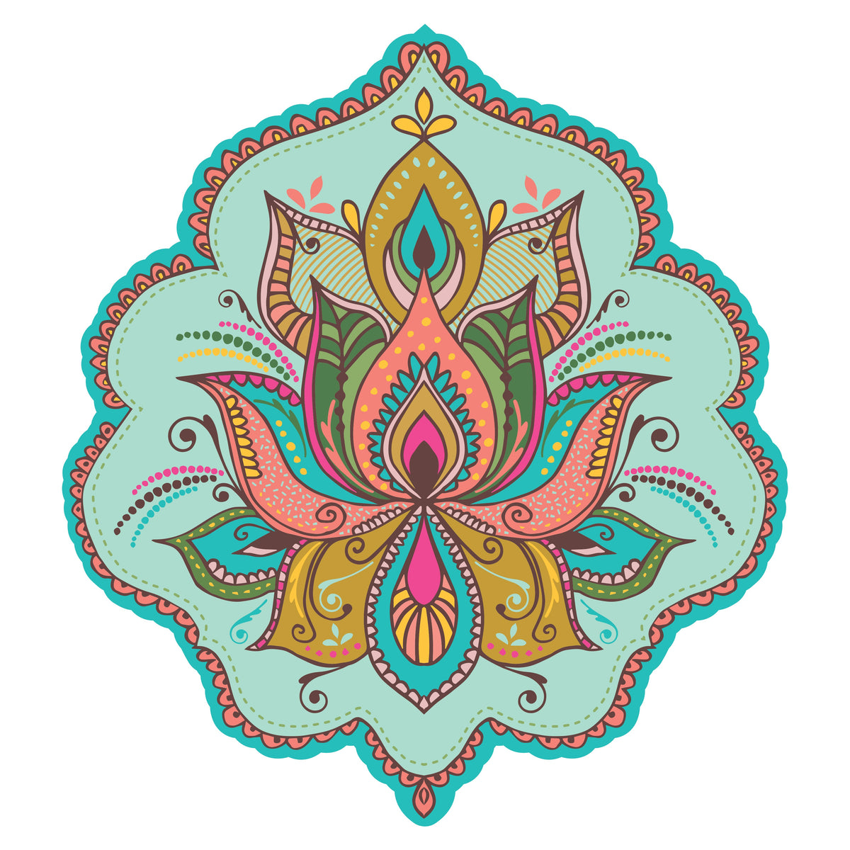 מדבקת קיר פרח לוטוס צבעוני ומיוחד עם מסגרת מעוטרת