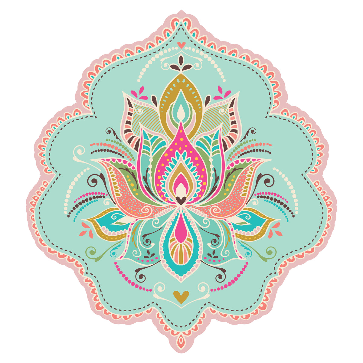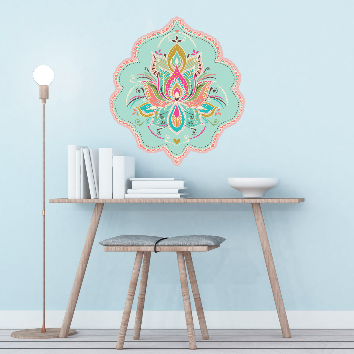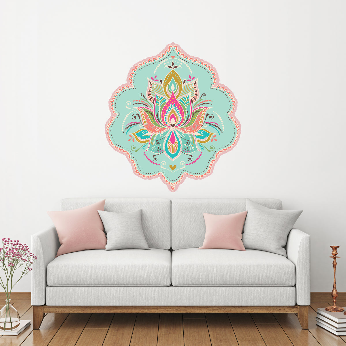 מדבקת קיר פרח לוטוס עם מסגרת מעוטרת