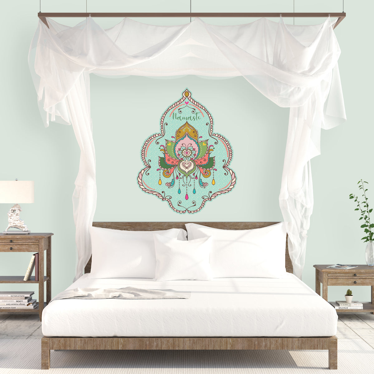 מדבקת קיר פרח לוטוס במסגרת מעוטרת וכיתוב Namaste