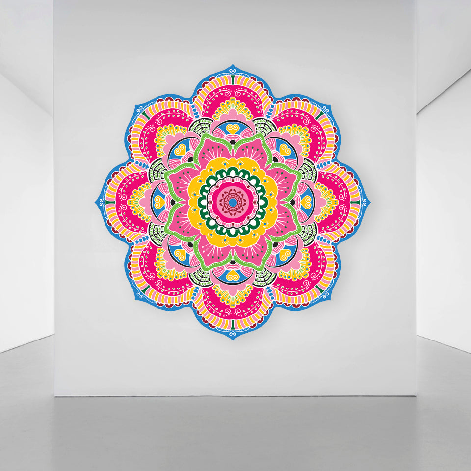 מדבקת קיר מנדלה בגוונים ורוד פוקסייה בחיתוך צורני