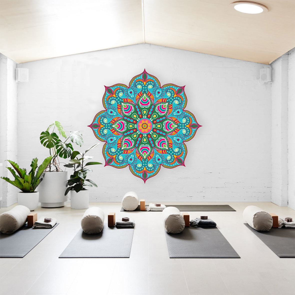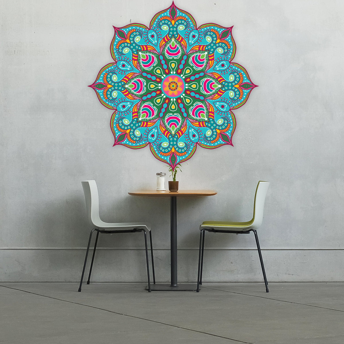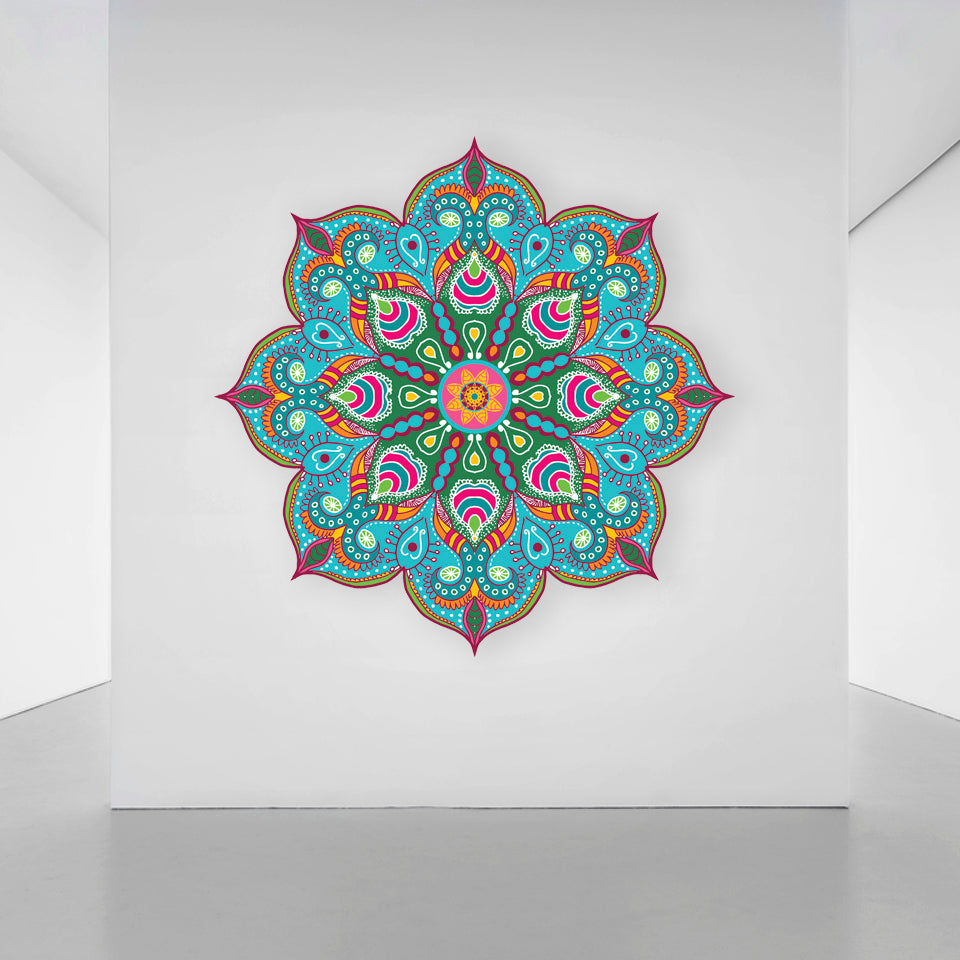מדבקת קיר מנדלה טורקיז צבעונית, בחיתוך צורני