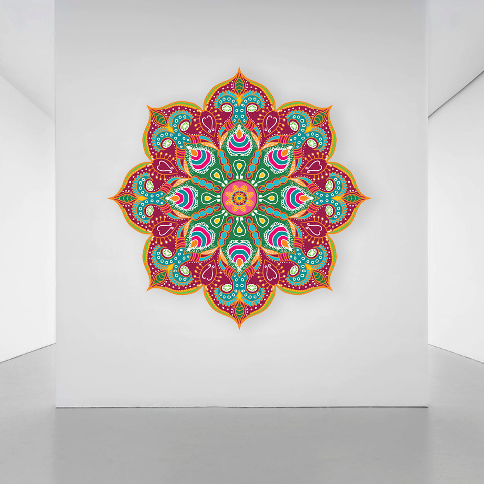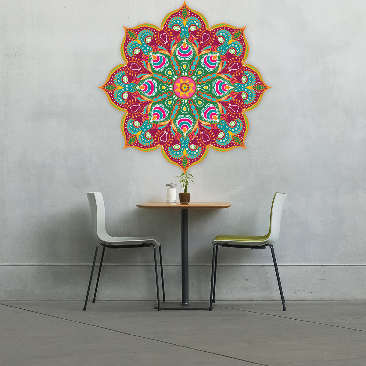 מדבקת קיר מנדלה בגווני בורדו, בחיתוך צורני