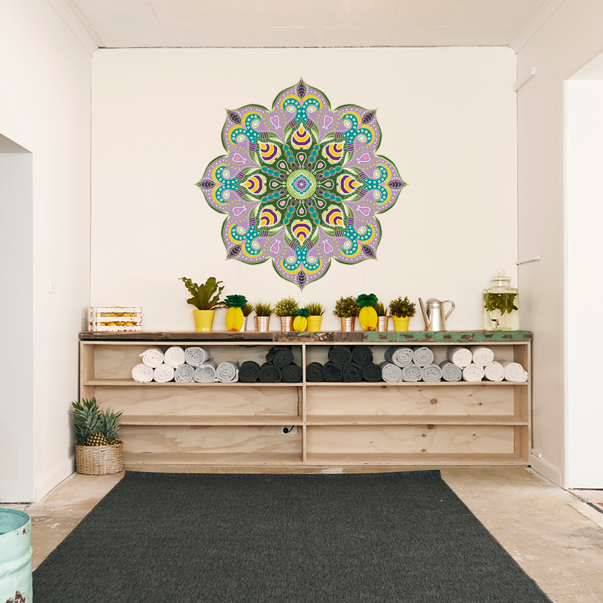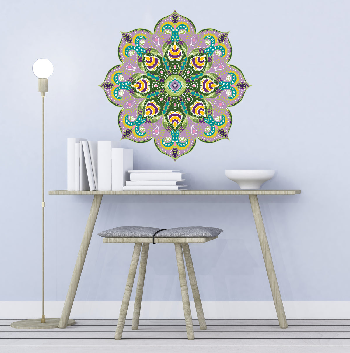 מדבקת קיר מנדלה סגול לילך בחיתוך צורני