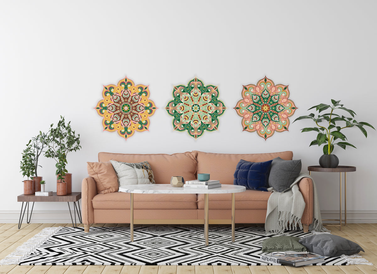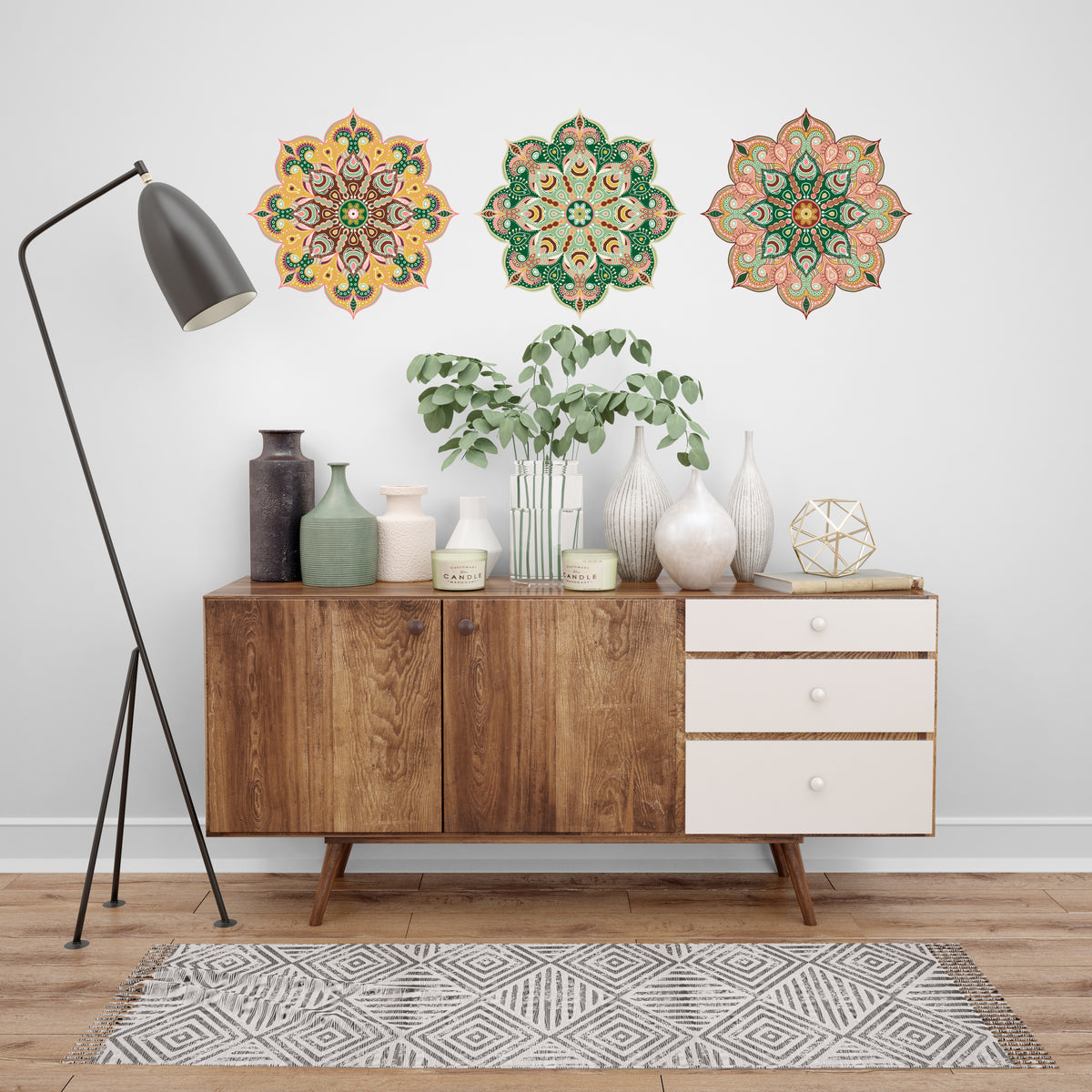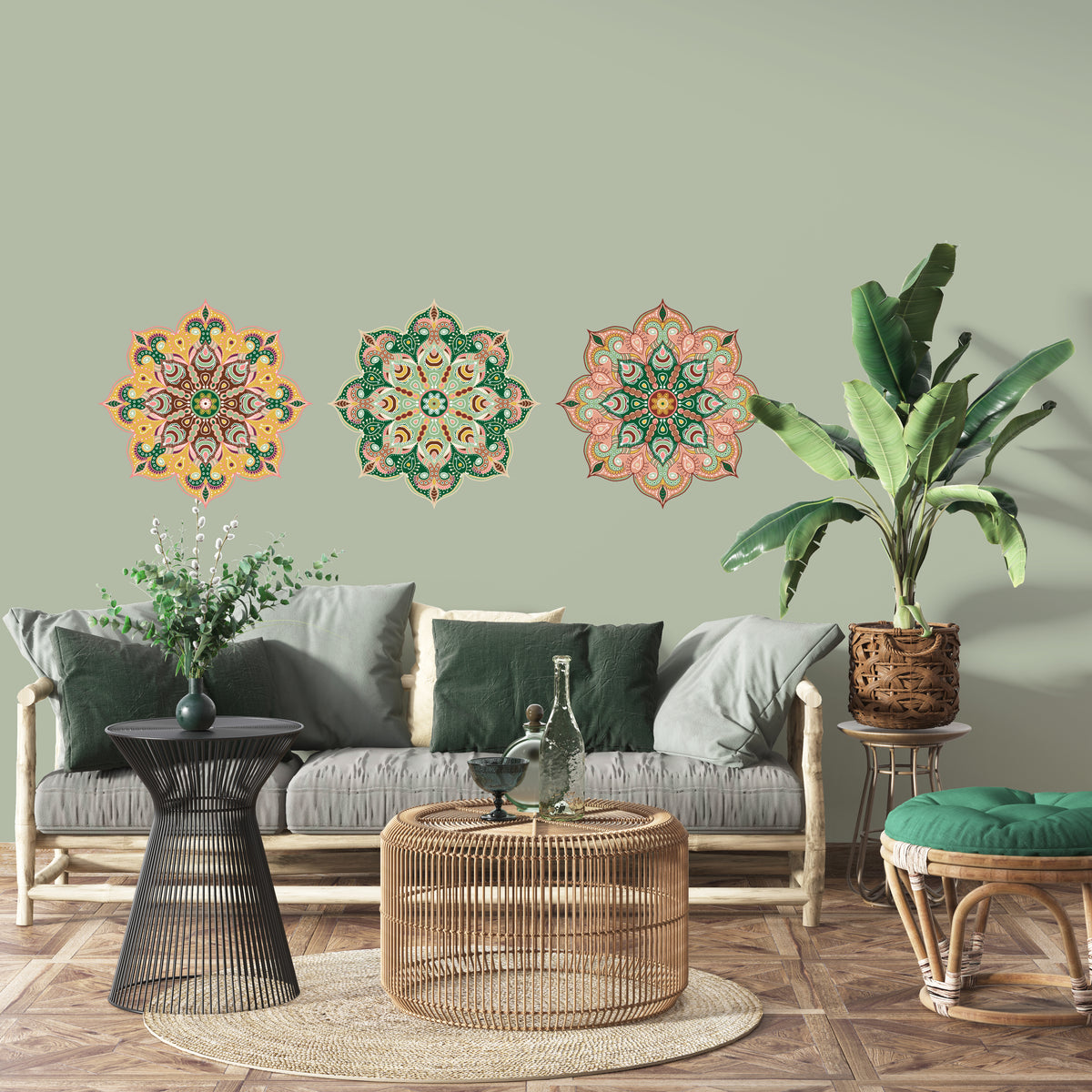 סט של שלוש מדבקות קיר מנדלות בגווני אדמה טבעיים
