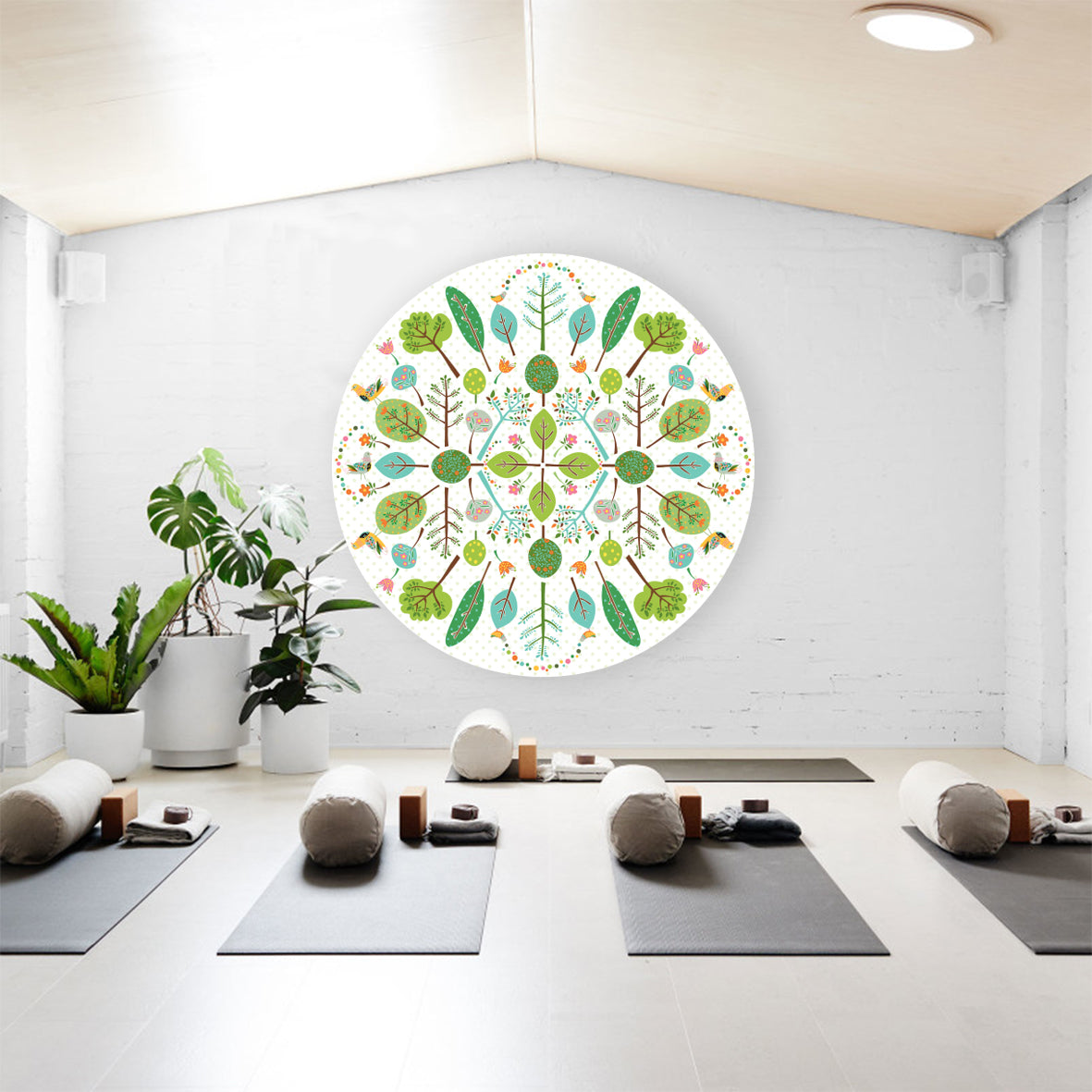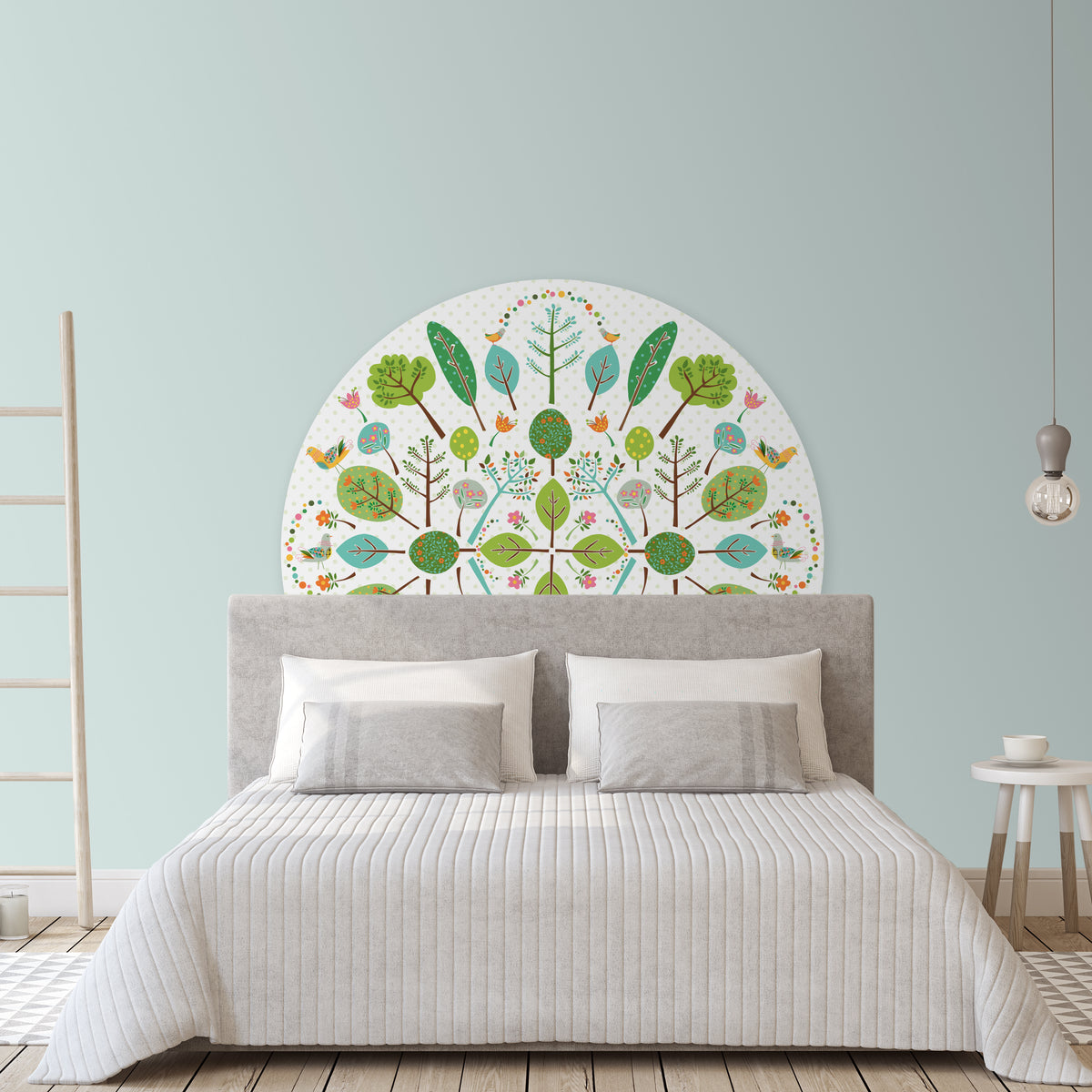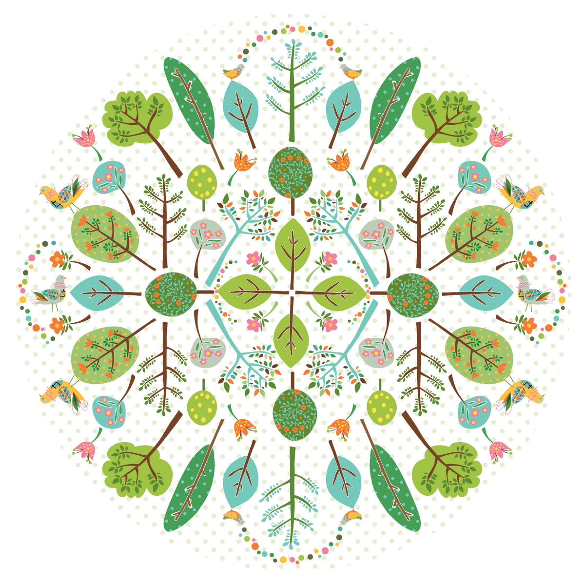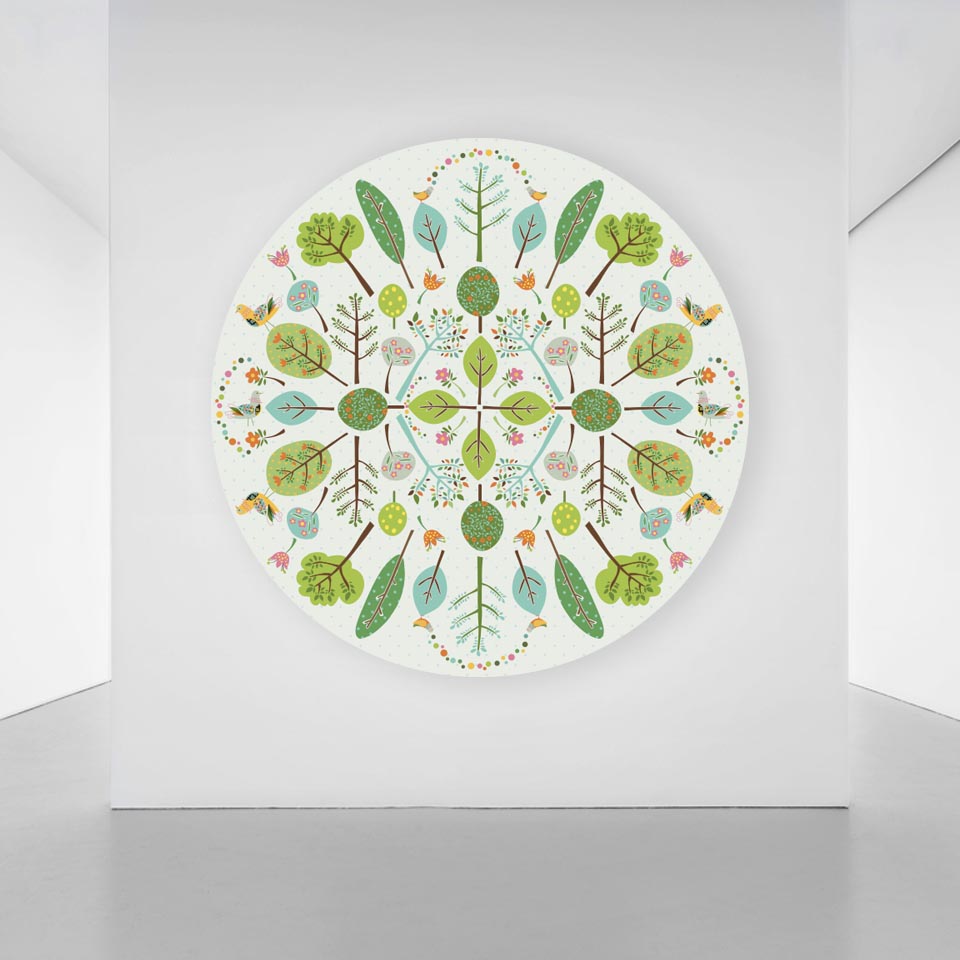 מנדלת קיר גדולה ומיוחדת במינה, עם איורי עצים, פרחים וציפורים