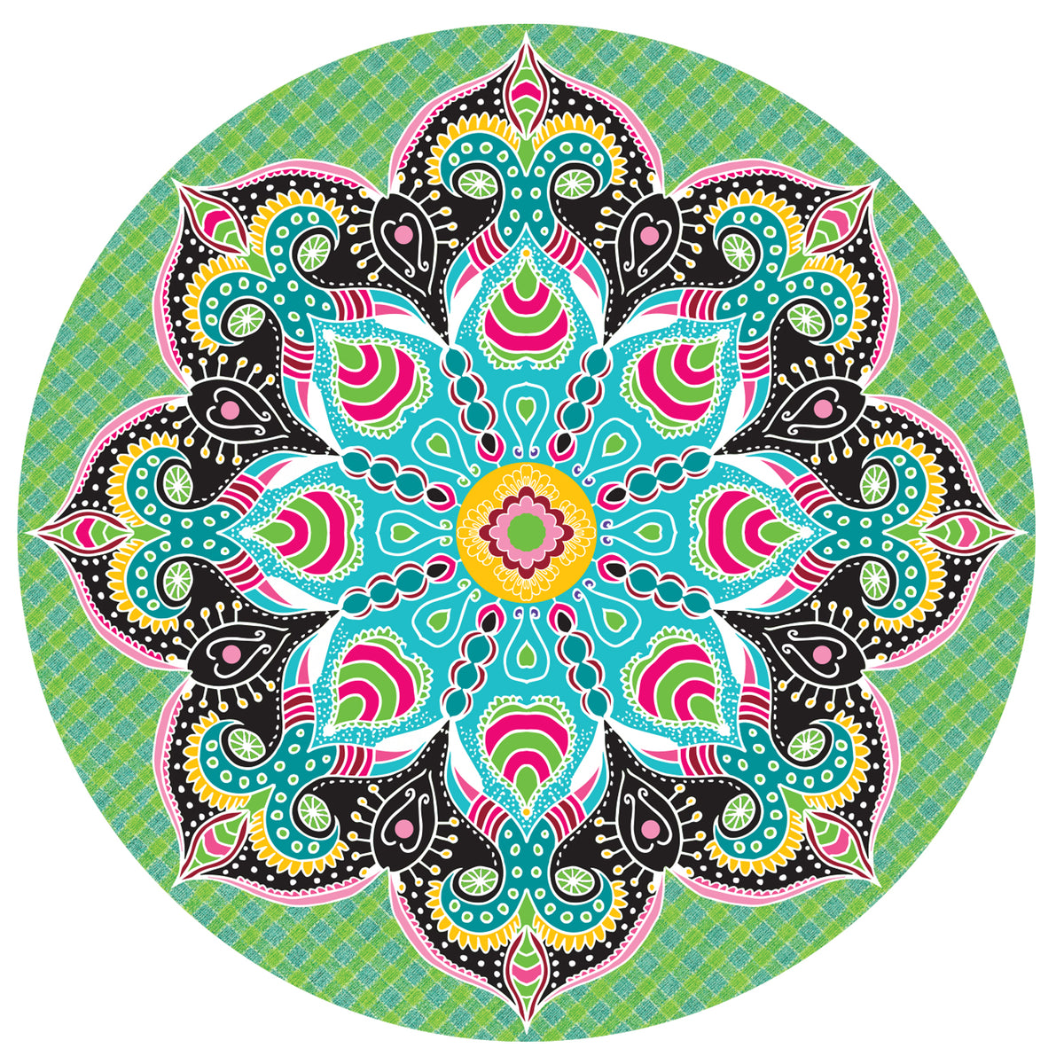 קוטר 40 ס״מ, כל מדבקה בסט שונה, עם מנדלות שונות.