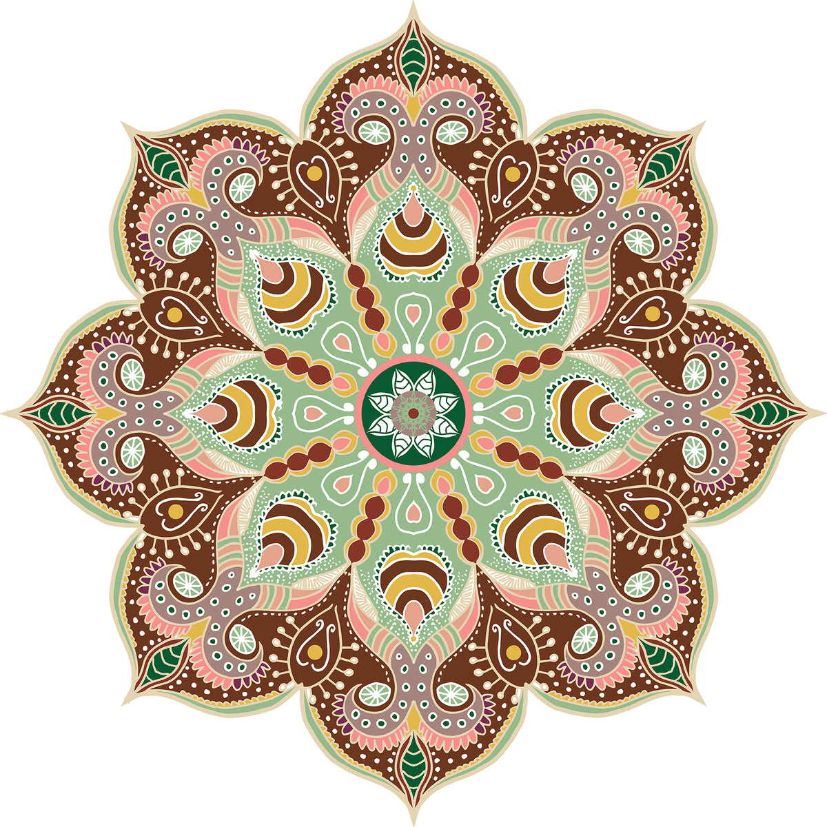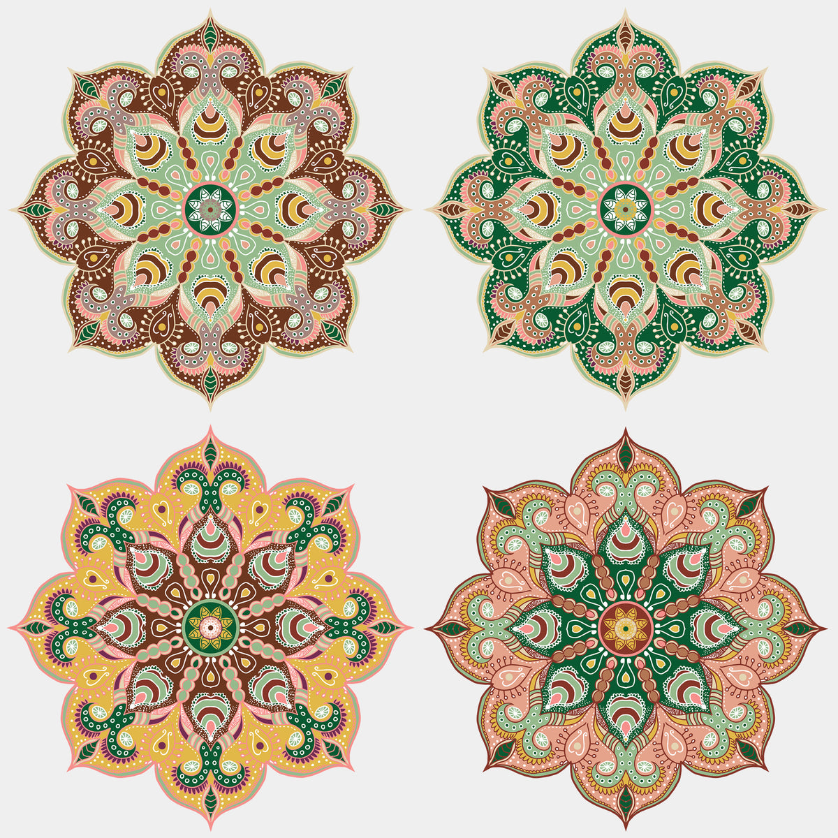 סט של ארבע מדבקות מנדלה שונות בצבעים טבעיים
