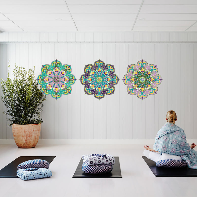 סט של שלוש מנדלות אפריקאיות בגווני טורקיז סגול