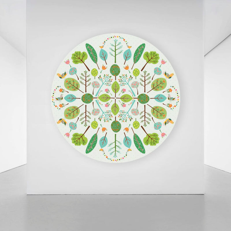 מדבקת קיר- מנדלת עצים רקע אפרפר