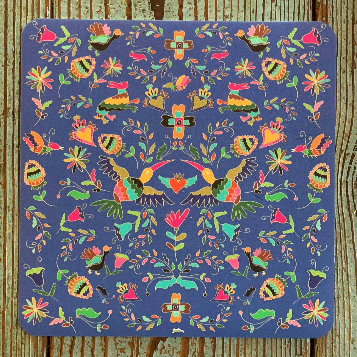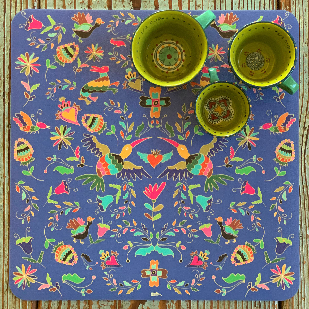 סט פלייסמטים ריבועי צבעוני מדהים עם איורים בסגנון מקסיקני