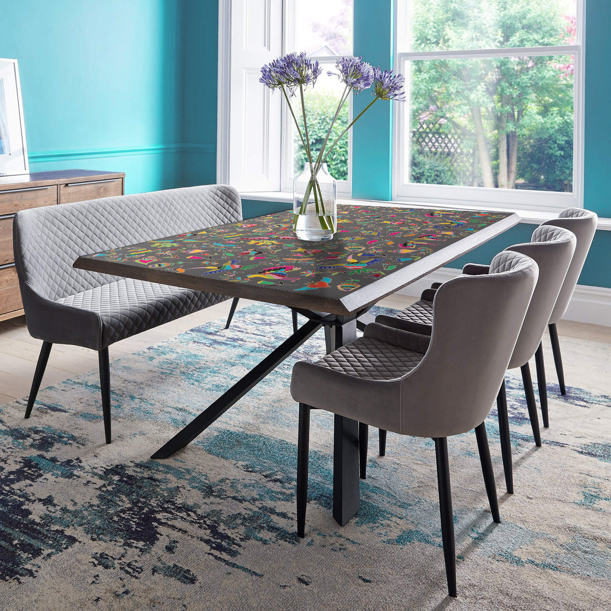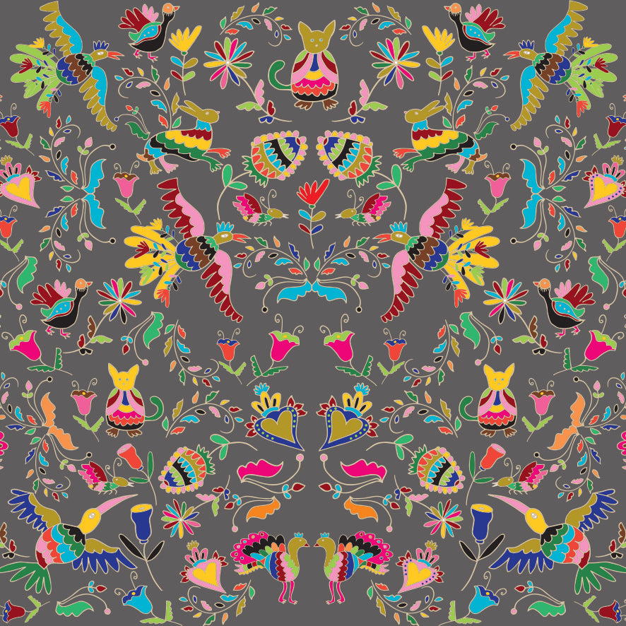מפת פלייסמט מלבנית צבעונית ושמחה עם איורים בסגנון רקמות מקסיקניות