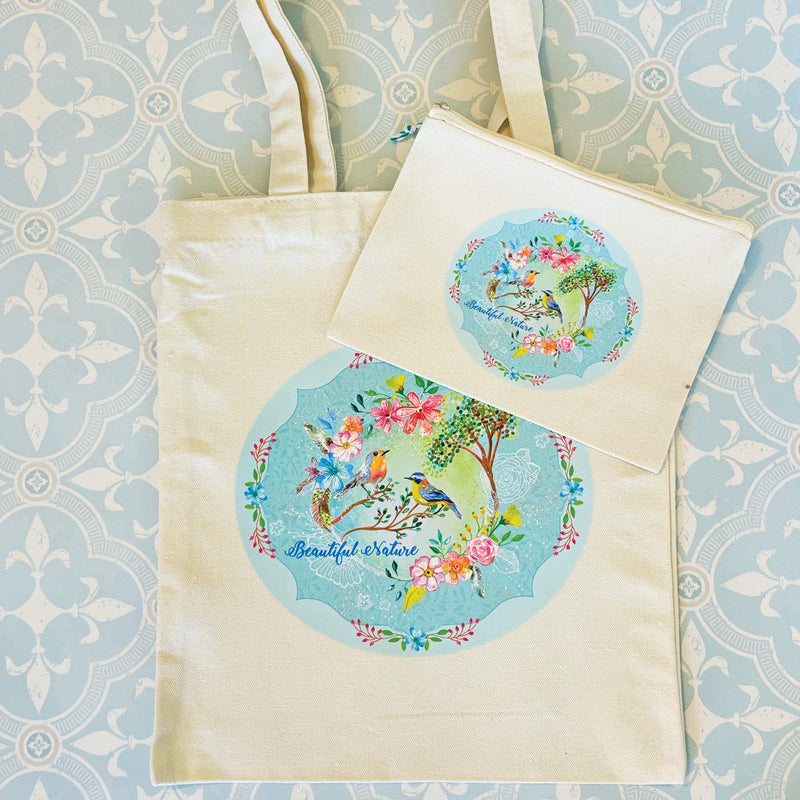 תיק וקלמר תואם מבד- הדפס beautiful nature טורקיז
