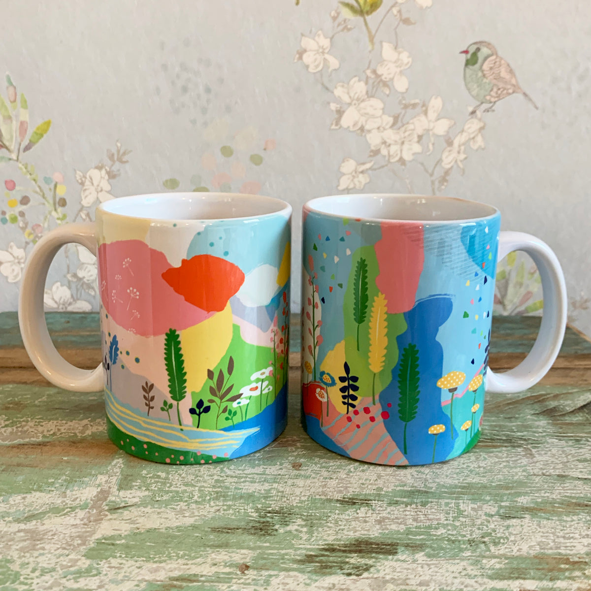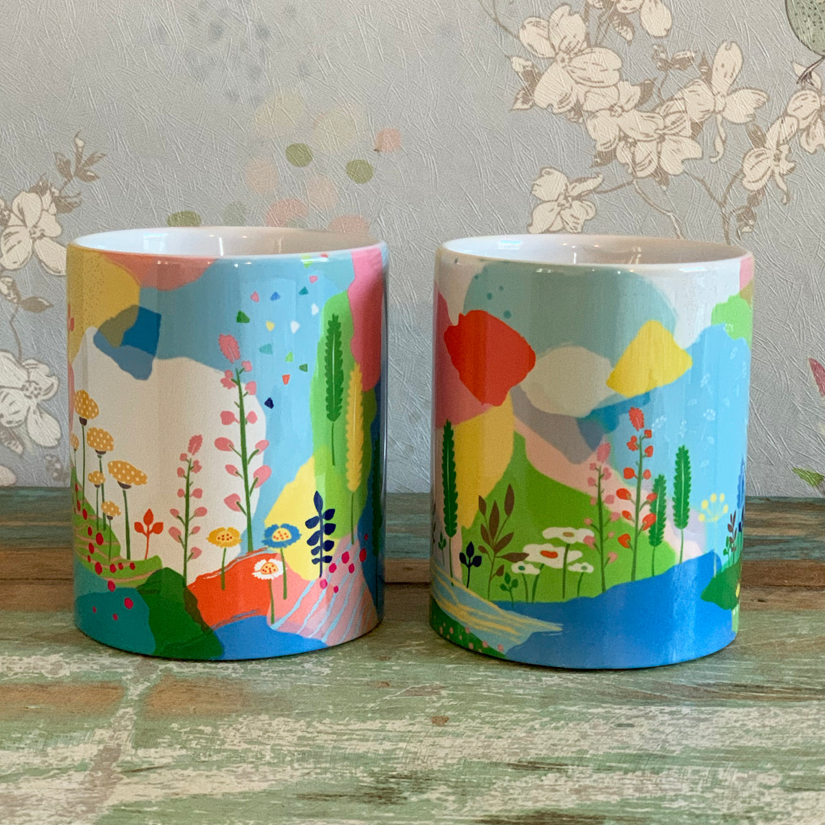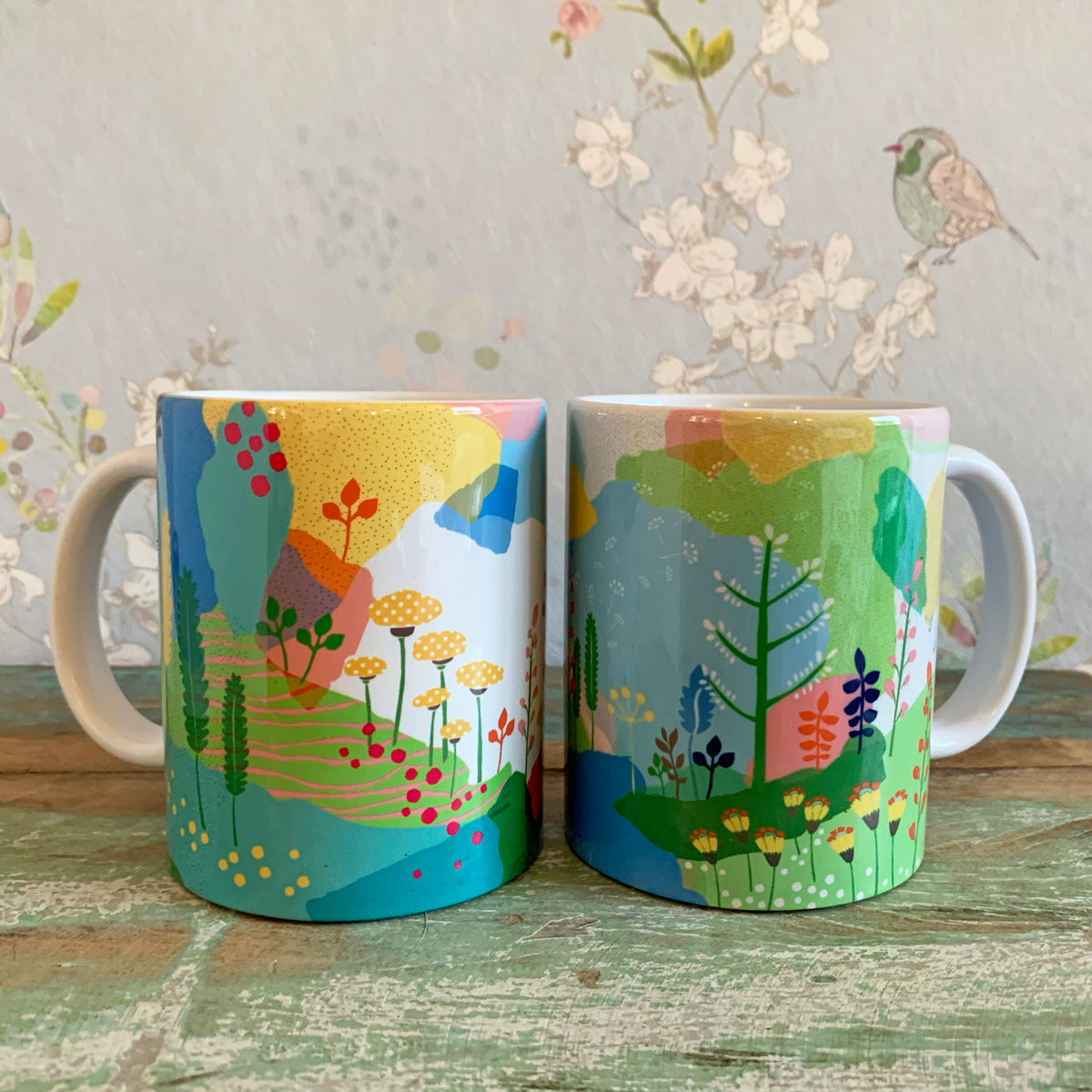 צמד ספלים מקסים וצבעוני עם איורי נוף